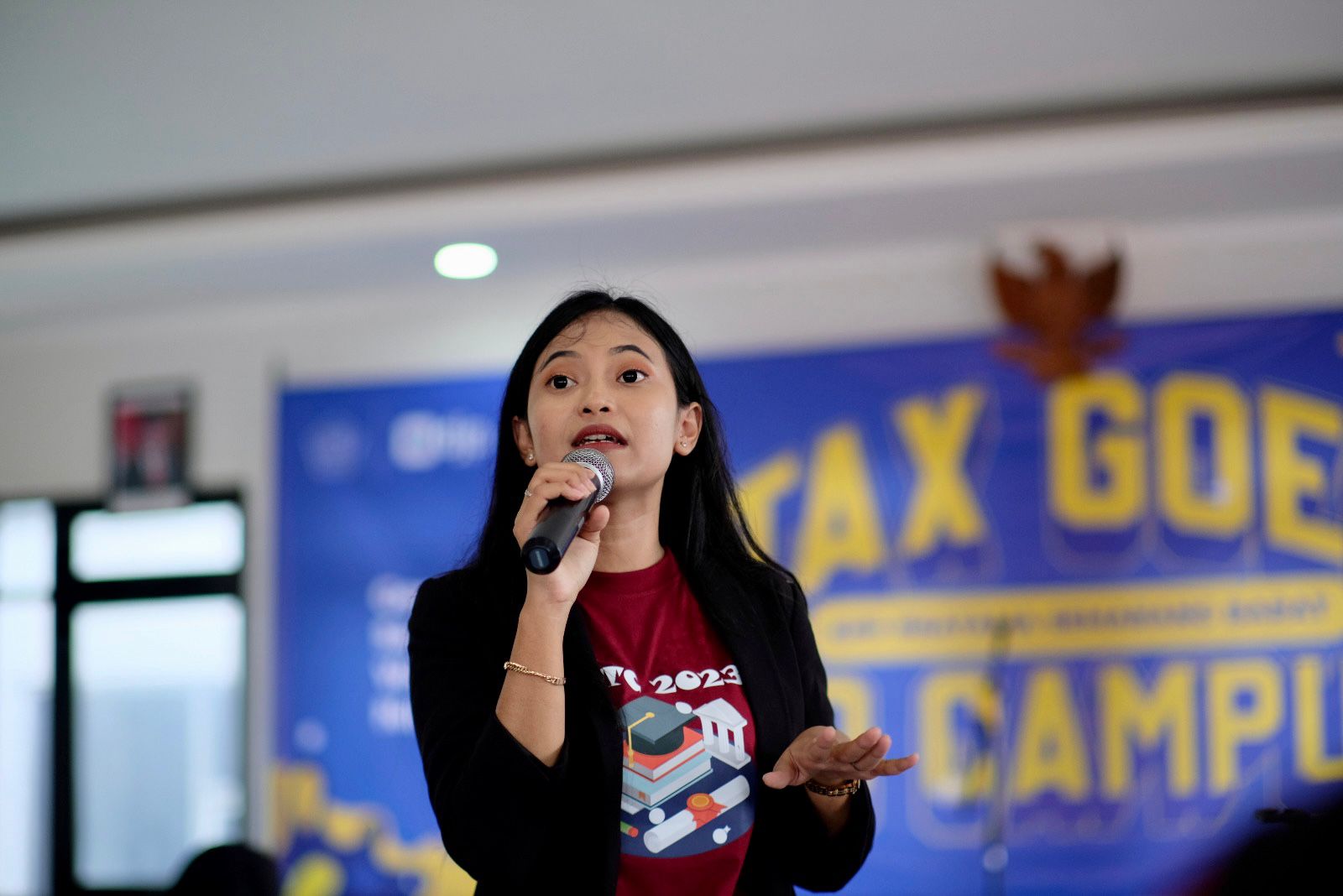 Penyuluh Pajak Erdiani Deswitasari memberikan materi terkait dengan perpajakan dengan tujuan menanamkan kesadaran pajak kepada generasi muda bangsa. Pihak kampus menyambut baik kedatangan petugas pajak dengan mengikuti seluruh rangkaian kegiatan, memberikan pertunjukan grup band mahasiswa kampus, dan secara kritis bertanya terkait perpajakan Indonesia.