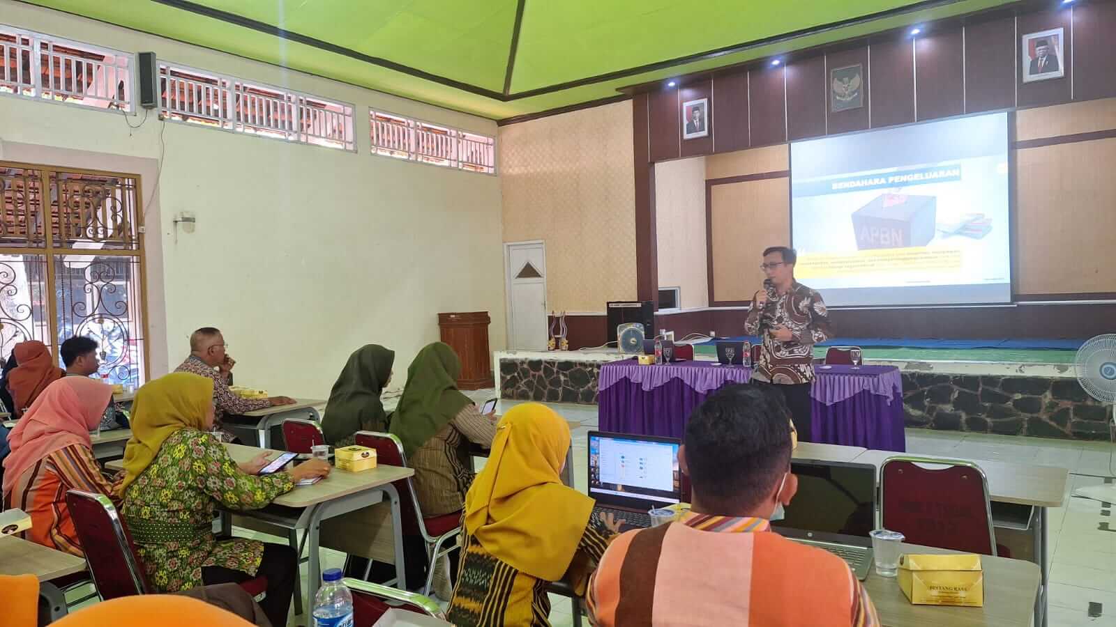 Dalam kegiatan ini tim dari KPP Pratama Semarang Tengah memberikan sosialisasi tentang pemenuhan kewajiban perpajakan bagi para bendahara sekolah. Tim mengajak para peserta untuk membiasakan pemenuhan kewajiban perpajakan secara tertib, dalam hal waktu maupun materi pelaporannya.