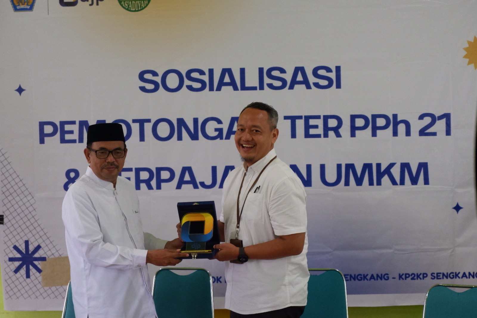 Setelah penyampaian sambutan, Kepala KP2KP Sengkang dan Wakil Ketua Pengurus Pusat Pondok Pesantren As’adiyah melakukan pertukaran plakat untuk memperkuat sinergi antara lembaga dengan pemerintah guna mendorong terciptanya lingkungan masyarakat yang sadar dan peduli pajak.