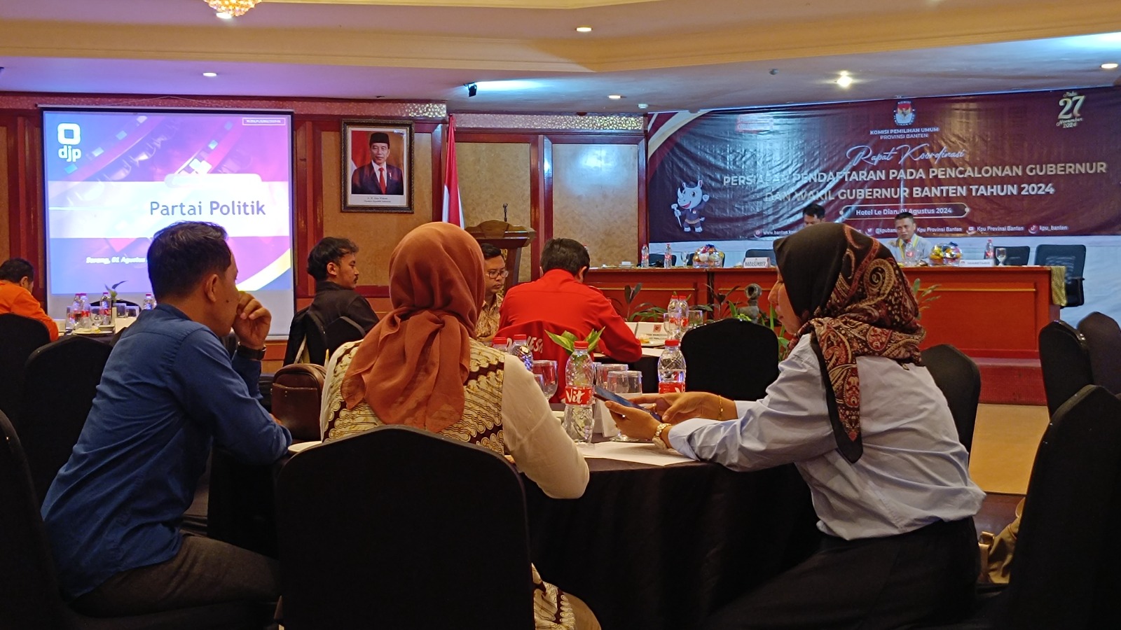 Menjelang pelaksanaan Pemilihan Kepala Daerah (Pilkada) Provinsi Banten tahun 2024, Komisi Pemilihan Umum (KPU) Provinsi Banten menggelar Rapat Koordinasi Persiapan Pendaftaran pada Pencalonan Gubernur dan Wakil Gubernur Banten. Kegiatan yang berlangsung di Le Dian Hotel & Cottages ini bertujuan untuk memastikan kelancaran proses pendaftaran calon dan memenuhi semua persyaratan yang telah ditetapkan (Kamis, 1/8).