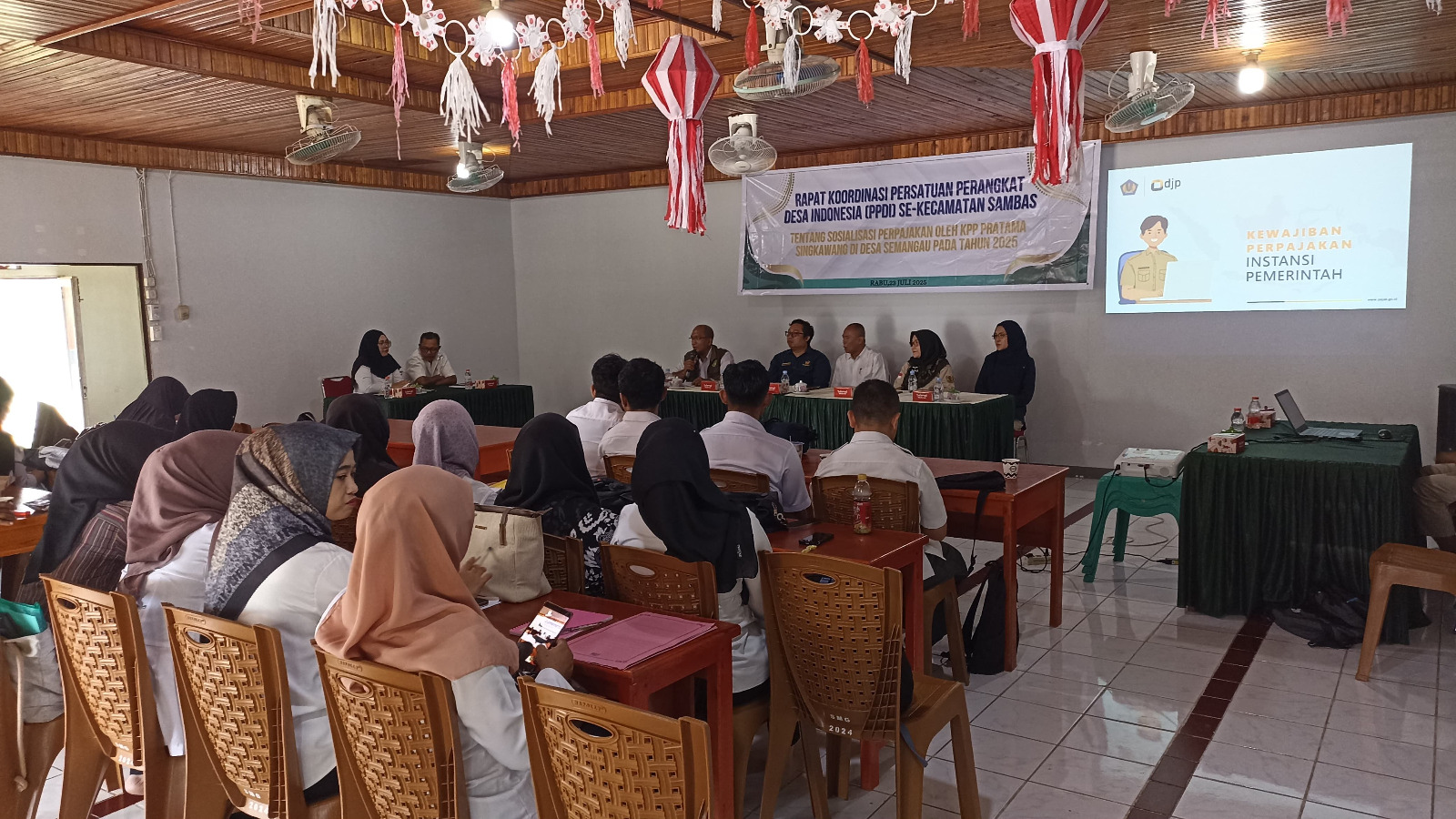 Kantor Pelayanan Pajak Pratama Singkawang (Pajak Singkawang) mengadakan kegiatan Sosialisasi Ketentuan Perpajakan Pemerintah Desa melalui Coretax DJP bertempat di Aula Kantor Desa Semangau yang berlokasi di Kecamatan Sambas, Kabupaten Sambas, Kalimantan Barat (Rabu, 23/7).