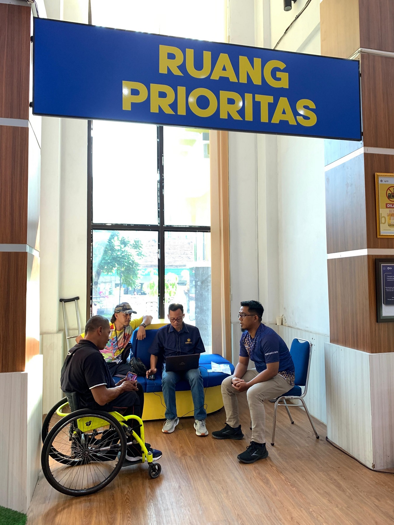 Kantor Pelayanan Pajak (KPP) Pratama Surakarta memberikan asistensi kepada wajib pajak penyandang disabilitas terkait pendaftaran Nomor Pokok Wajib Pajak (NPWP) Orang Pribadi di ruang prioritas tempat pelayanan terpadu (TPT) KPP Pratama Surakarta, Jalan Agus Salim No. 1, Sondakan, Surakarta (Rabu, 31/7).