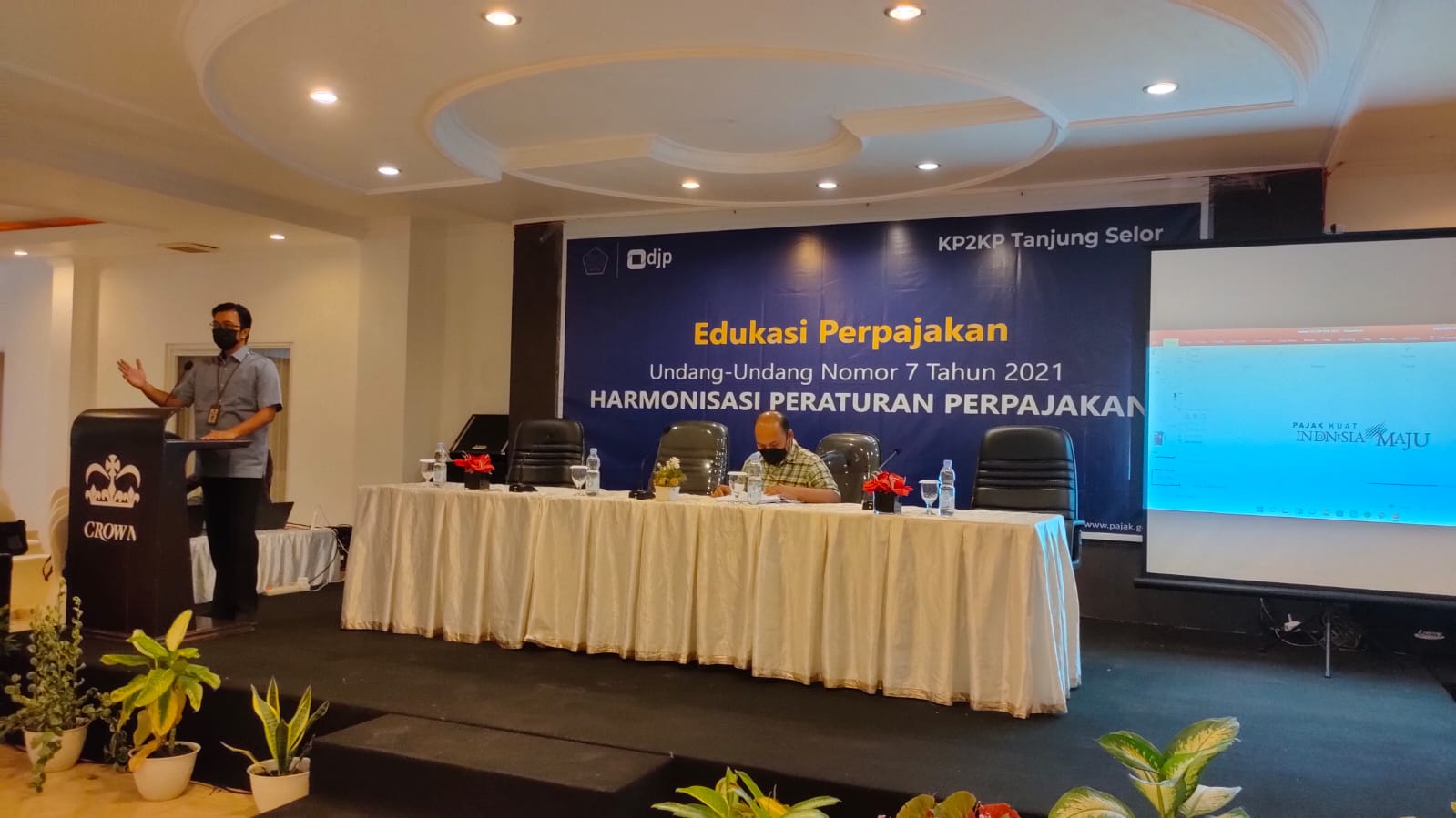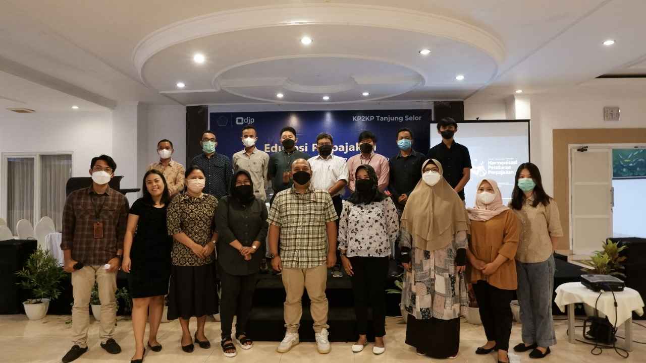Kantor Pelayanan Pajak (KPP) Pratama Tanjung Redeb yang diwakili Kepala Seksi Pengawasan III Dennis Dunan dan Kepala Kantor Pelayanan,Penyuluhan, dan Konsultasi Perpajakan (KP2KP) Tanjung Selor Agus Setiawan beserta tim mengadakan kegiatan Edukasi Perpajakan tentang Undang-Undang (UU) Nomor 7 Tahun 2021 terkait Harmonisasi Peraturan Perpajakan (HPP). Kegiatan ini berlangsung di hallroom Hotel Crown, Tanjung Selor (Kamis, 09/12).