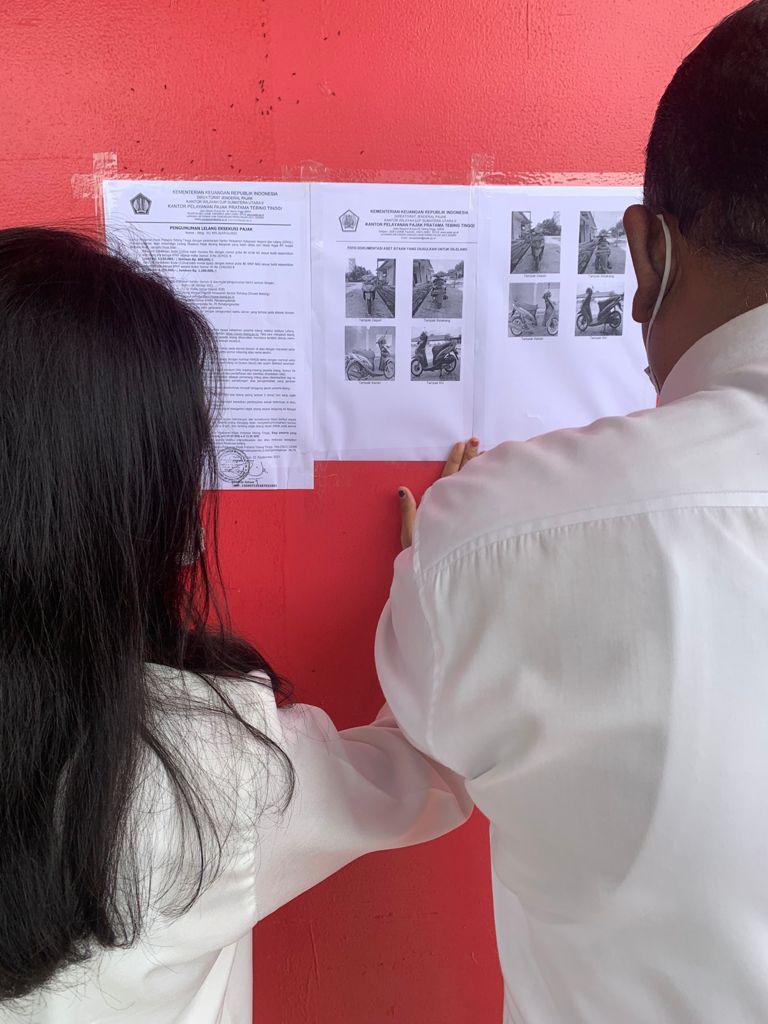 "Kegiatan ini dimaksudkan agar masyarakat tahu bahwa ada aset milik wajib pajak yang akan kita lelang dan apabila masyarakat ingin mengikuti lelang tersebut bisa mendapatkan informasi dengan jelas dengan adanya penempelan pengumuman lelang ini" jelas Endar.