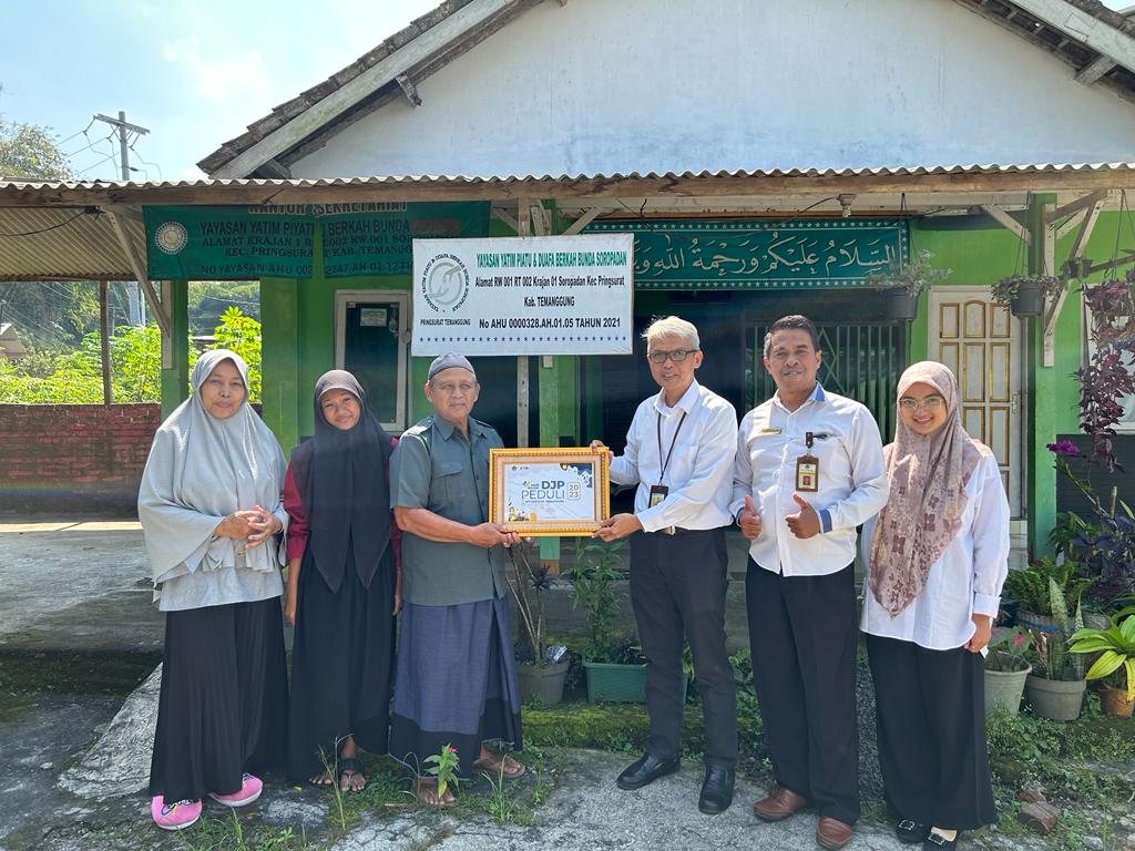 Kantor Pelayanan Pajak (KPP) Pratama Temanggung melaksanakan kegiatan Direktorat Jenderal Pajak (DJP) Peduli dengan memberikan santunan kepada anak-anak yatim dhuafa (Senin, 10/7). KPP Pratama Temanggung mendatangi dua yayasan, yaitu Yayasan Yatim Al Husna di Desa Kranjengan, Tembarak, Temanggung dan Yayasan Berkah Bunda di Jalan Raya Patran Medono, Krajan, Soropadan, Pringsurat, Temanggung.
