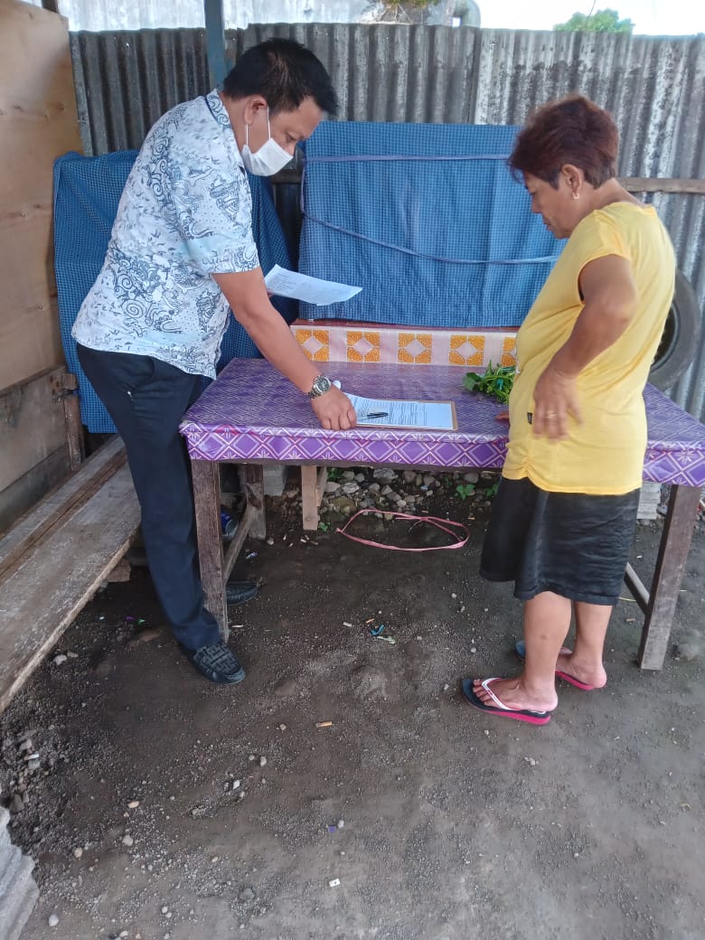 Pegawai Kantor Pelayanan, Penyuluhan, dan Konsultasi Perpajakan (KP2KP) Tomohon Marsely Jani Gonie melakukan kunjungan kerja ke tempat tinggal wajib pajak di Lingkungan IV dan Lingkungan V Kelurahan Kakaskasen Tiga, Kecamatan Tomohon Selatan, Kota Tomohon (Selasa, 17/05).