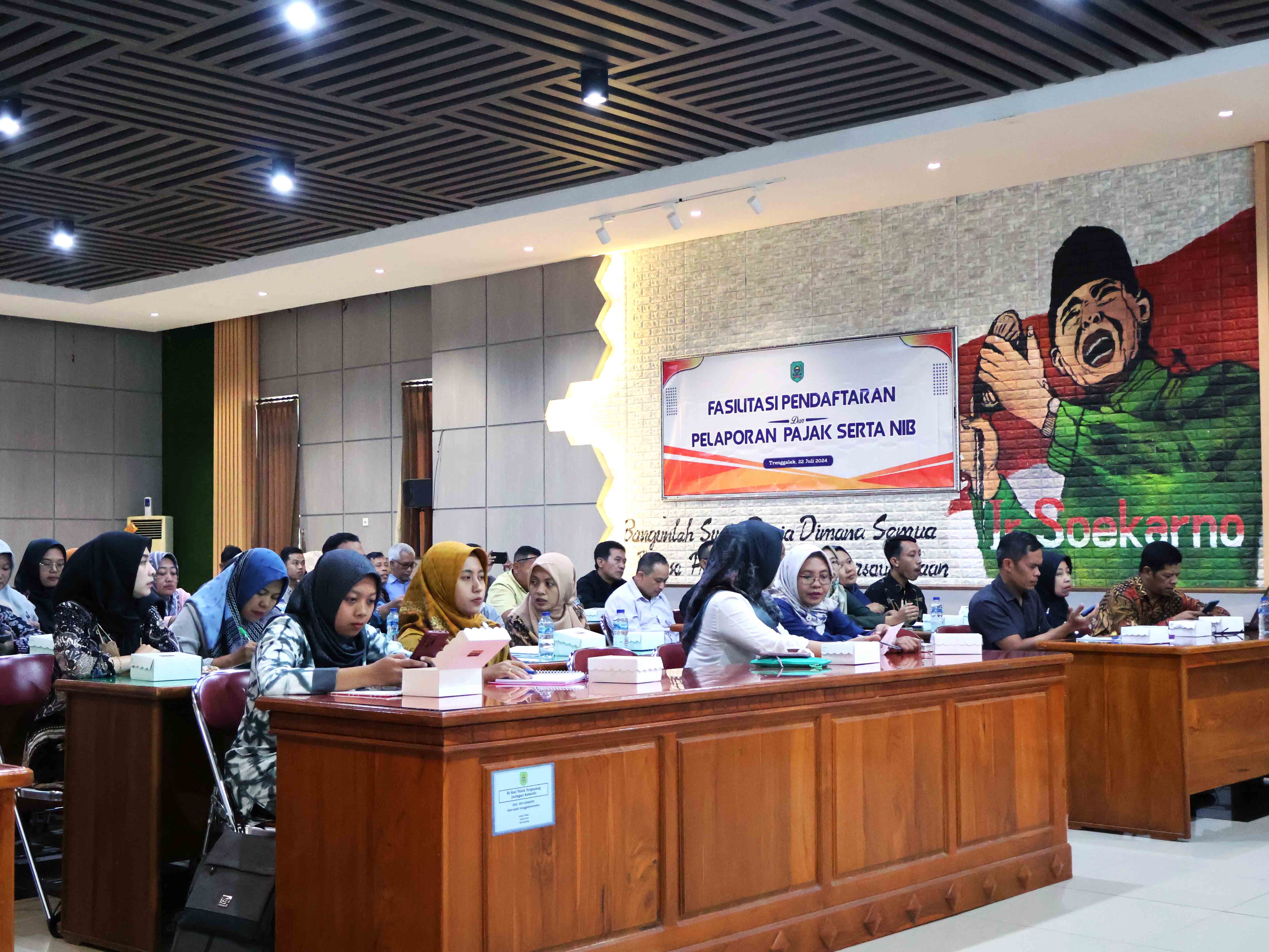 Bagus Dwi Atmaja, Petugas Kantor Pelayanan, Penyuluhan, dan Konsultasi Perpajakan (KP2KP) Trenggalek menjelaskan tentang kewajiban perpajakan Badan Usaha Milik Desa (Bumdes). Penjelasan tersebut dipaparkan oleh keduanya dalam acara Sosialisasi Pendaftaran dan Pelaporan Pajak Serta NIB di Gedung Bhawa Rasa Lantai II Kabupaten Trenggalek, Jawa Timur (Senin, 22/7).
