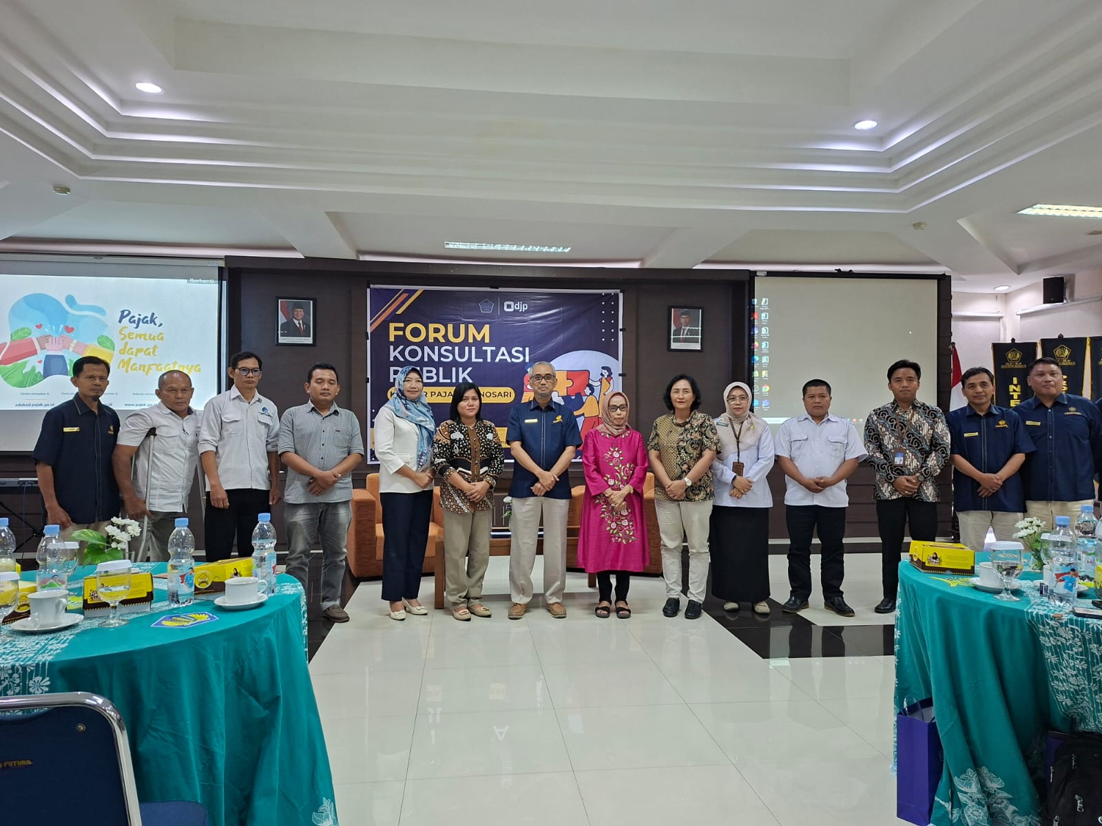 Kantor Pelayanan Pajak (KPP) Wonosari mengundang jajaran pentahelix dari berbagai elemen masyarakat dalam acara Forum Konsultasi Publik Tahun 2025 di Ruang Aula Lantai 3 KPP Pratama Wonosari, Jalan KH. Agus Salim 170B, Ledoksari, Kepek, Wonosari, Kabupaten Gunungkidul (Rabu, 20/8).