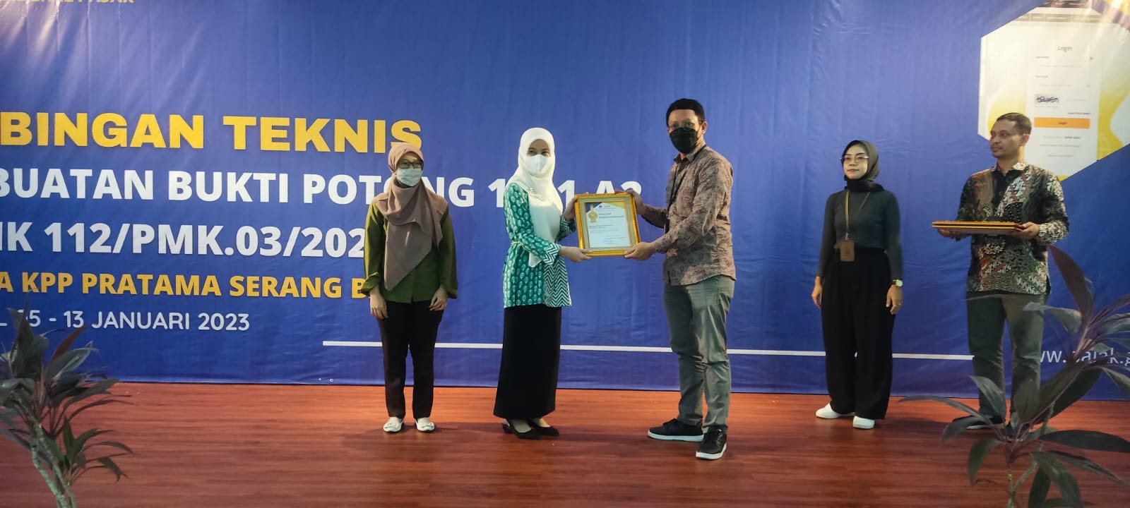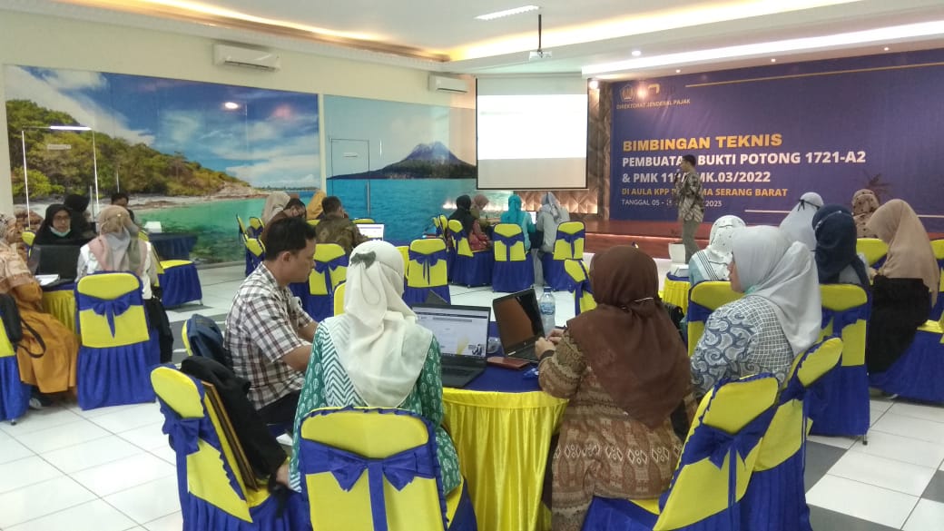 Kantor Pelayanan Pajak (KPP) Pratama Serang Barat mengadakan kegiatan Bimbingan Teknis Pembuatan Bukti Potong 1721-A2 & PMK 112/PMK.03/2022 yang dihadiri oleh bendahara dari 25 satuan kerja (satker) Kabupaten Serang, bertempat di Aula KPP Pratama Serang Barat, Kota Serang (Jumat, 13/1).