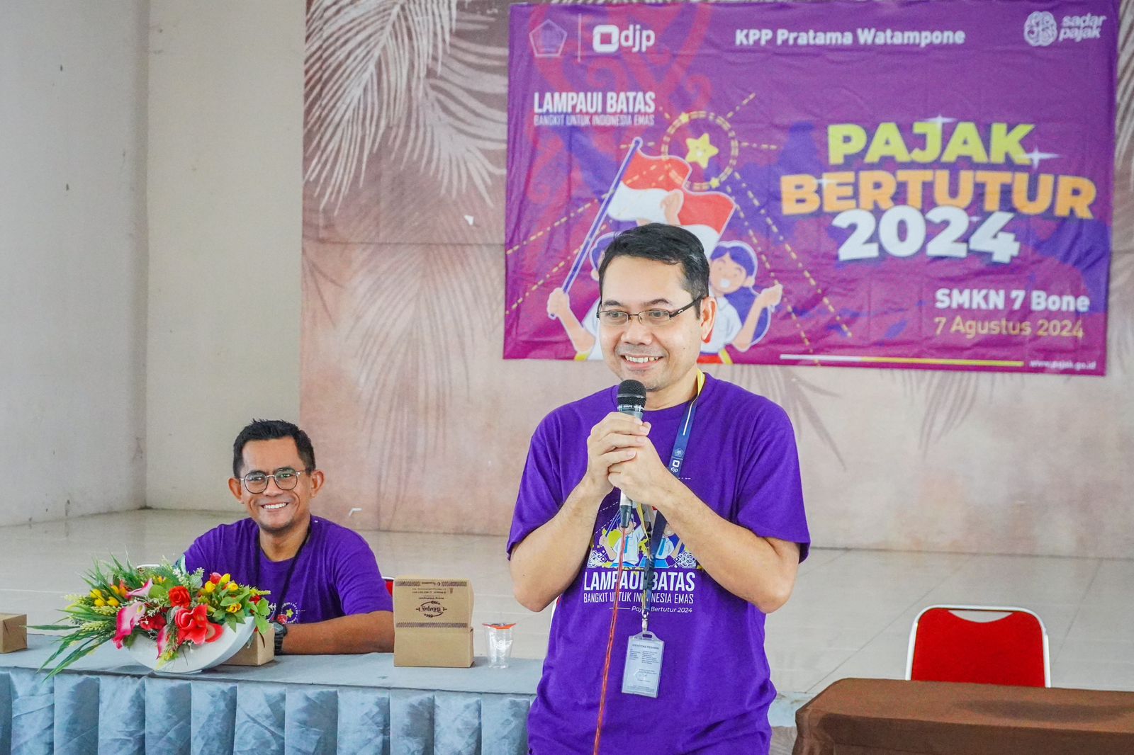 Direktorat Jenderal Pajak menyelenggarakan kegiatan Pajak Bertutur (Patur) 2024 dengan tema “Lampaui Batas, Bangkit untuk Indonesia Emas” yang dilakukan oleh seluruh Kantor Pelayanan Pajak (KPP) di Indonesia. KPP Pratama Watampone turut serta dalam menyelenggarakan kegiatan Pajak Bertutur 2024 pada Sekolah Menengah Kejuruan (SMK) Negeri 7 Bone, Kelurahan Biru, Kecamatan Tanete Riattang, Kabupaten Bone (Rabu, 7/8).