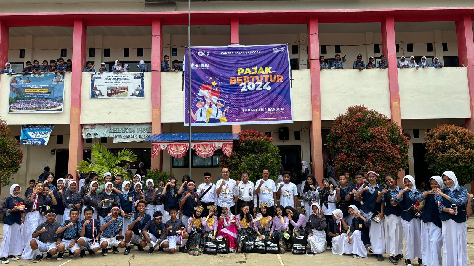 Kantor Pelayanan, Penyuluhan, dan Konsultasi Perpajakan (KP2KP) Banggai menggelar kegiatan Pajak Bertutur 2024 di SMP Negeri 1 Banggai, Sulawesi Tengah (Rabu, 7/8). Kegiatan tersebut digelar di ruang kelas dengan diikuti lima puluh siswa-siswi dari kelas 7 sampai dengan kelas 9. Pajak Bertutur ini hadir dengan tema "Lampaui Batas, Bangkit Untuk Indonesia Emas" serta dilaksanakan secara serentak di seluruh wilayah Indonesia.