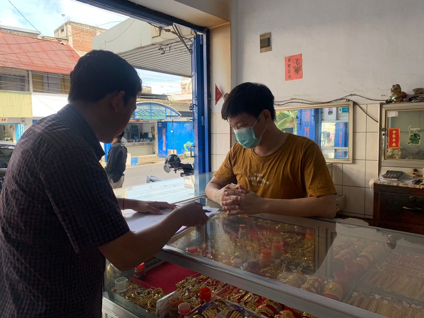 Pelaksana Kantor Pelayanan, Penyuluhan, dan Konsultasi (KP2KP) Pinrang memberikan edukasi kepada wajib pajak pedagang emas perhiasan di Jalan Melati, Kecamatan Watang Sawitto, Kabupaten Pinrang (Selasa, 7/5). Edukasi yang diberikan terkait kewajiban pedagang emas perhiasan untuk dikukuhkan sebagai Pengusaha Kena Pajak (PKP).