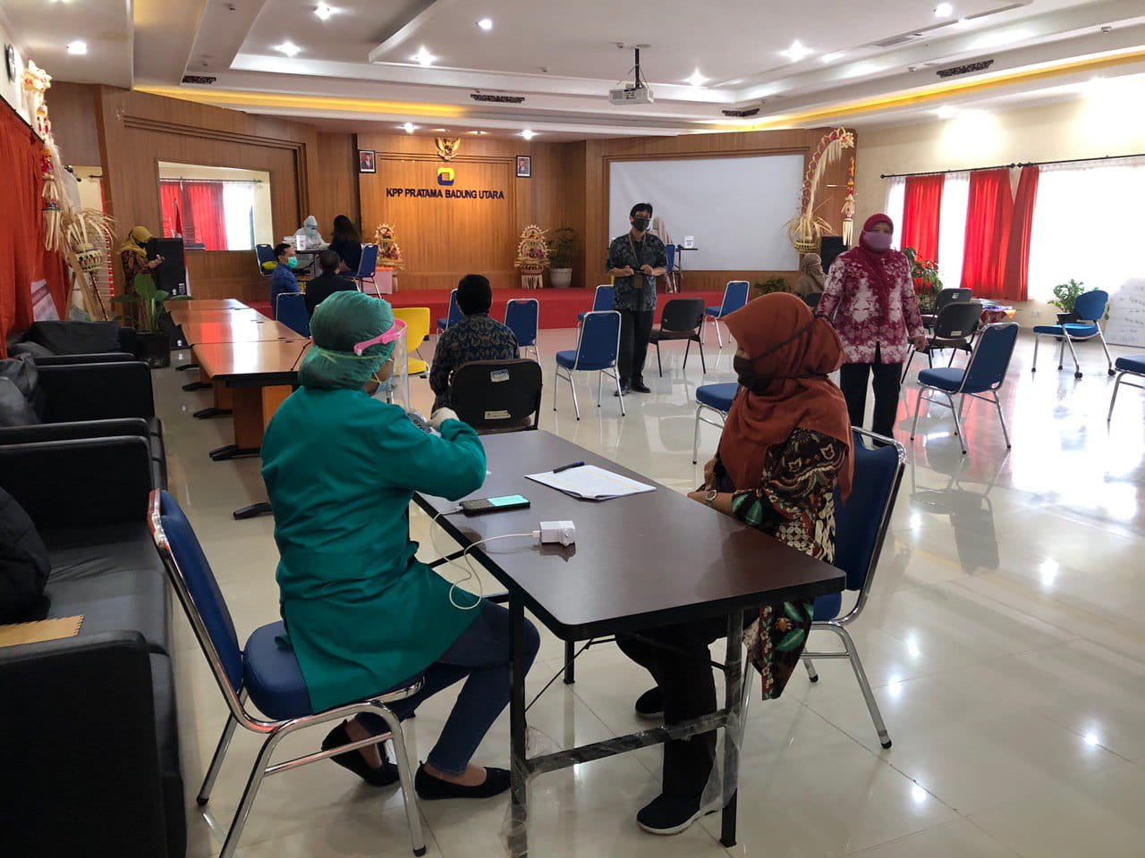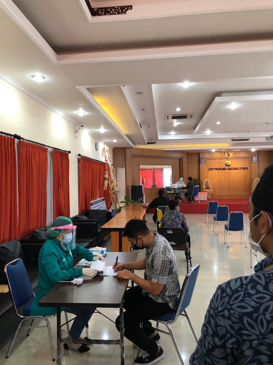 KPP Pratama Badung Utara dan KP2KP Kerobokan mengadakan Rapid Test kepada seluruh pegawai untuk mengantisipasi dan memutus mata rantai Corona Virus Disease 2019 (Covid-19) di Aula KPP Pratama Badung Utara dimulai pukul 09:00 hingga 15:00 WITA (Selasa, 4/8).