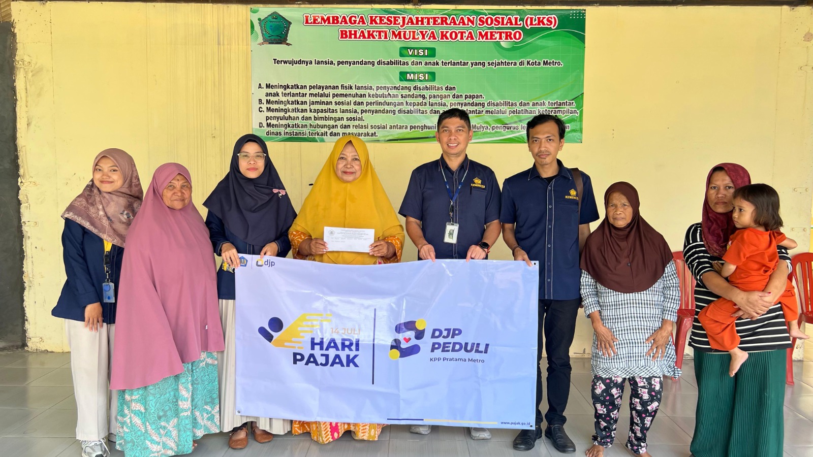 Kantor Pelayanan Pajak (KPP) Pratama Metro menggelar kegiatan Direktorat Jenderal Pajak (DJP) Peduli sebagai rangkaian dari Kegiatan Hari Pajak Tahun 2025 di Yayasan Bakti Mulia, Kota Metro (Rabu, 9/7). Kegiatan yang dilakukan secara rutin setiap tahun ini bertujuan untuk meningkatkan jiwa sosial dan rasa kepedulian pegawai terhadap sesama terutama bagi orang yang membutuhkan.