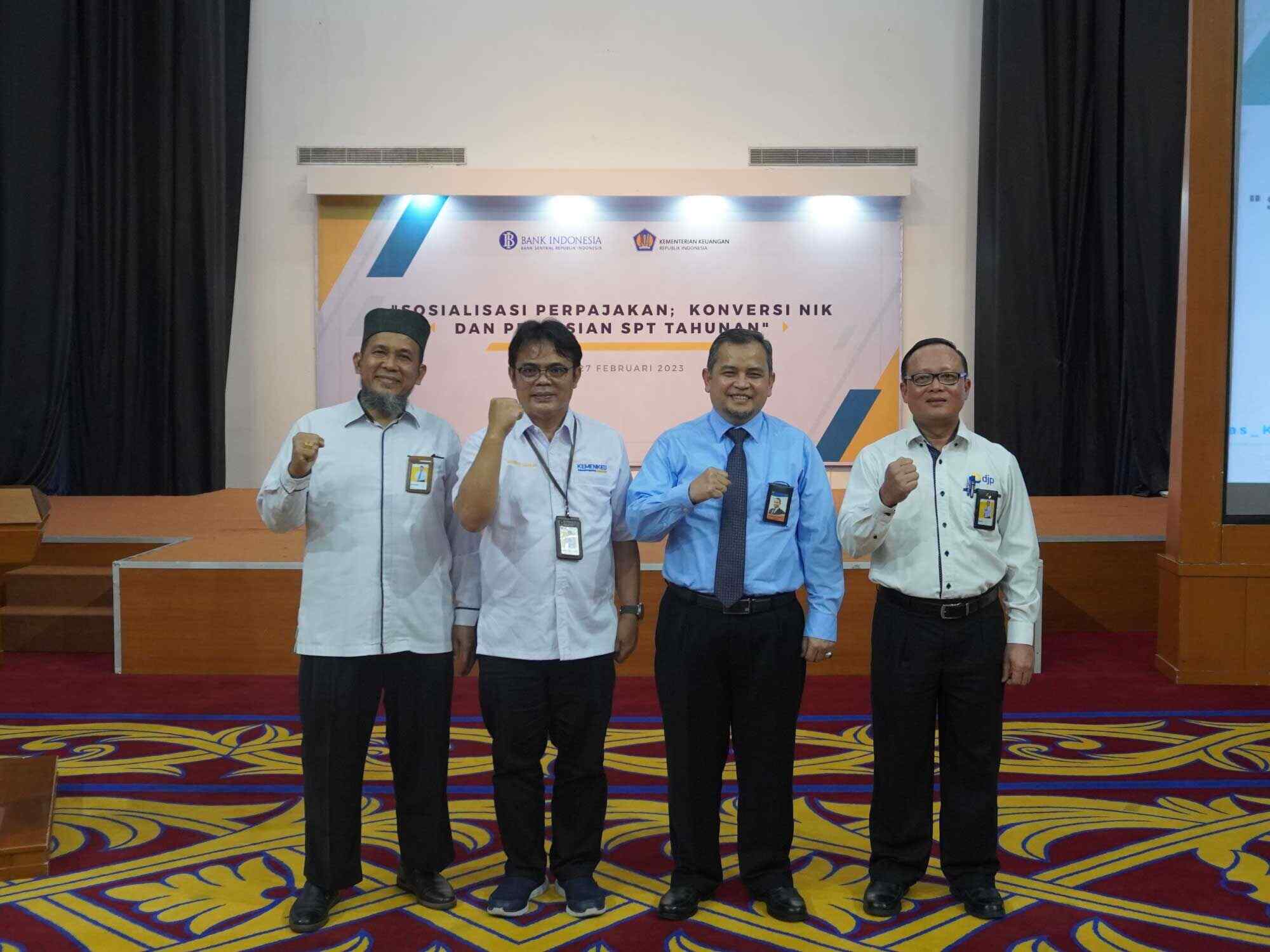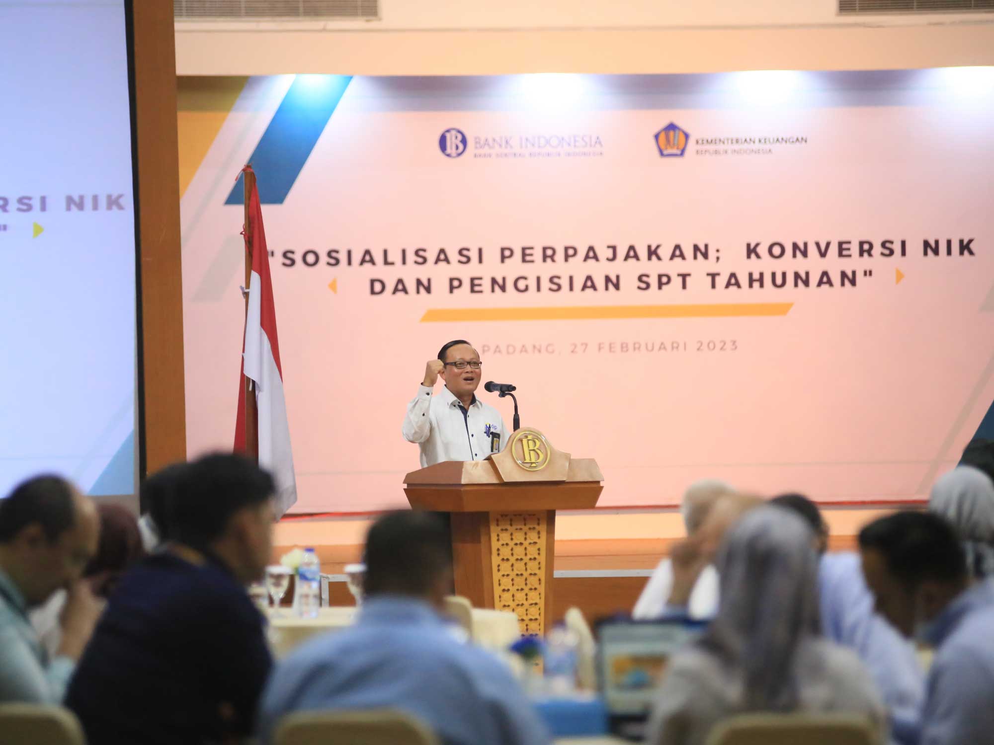 Kantor Wilayah Direktorat Jenderal Pajak (Kanwil DJP) Sumatera Barat dan Jambi menghadiri undangan Bank Indonesia Sumatera Barat sebagai narasumber dalam kegiatan Edukasi Perpajakan Pemadanan Nomor Induk Kependudukan (NIK) sebagai Nomor Pokok Wajib Pajak (NPWP) dan Pelaporan Surat Pemberitahuan (SPT) Tahunan Orang Pribadi melalui e-Filing. Kegiatan dilaksanakan di Aula Bank Indonesia Provinsi Sumatera Barat, Padang (Senin, 27/2).