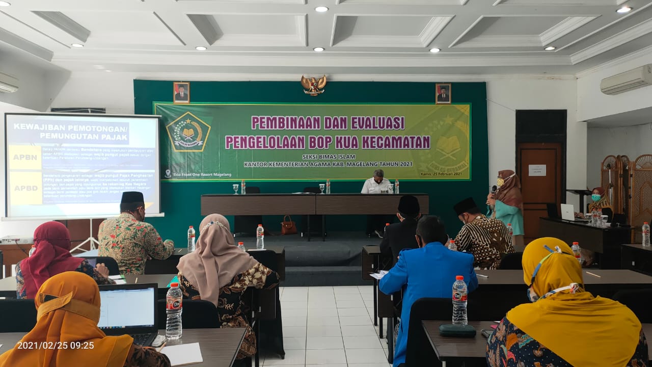 Kantor Pelayanan Pajak (KPP) Pratama Magelang melakukan Bimbingan Teknis Perpajakan kepada 33 pengelola Biaya Operasional (BOP) Kantor Urusan Agama (KUA) Kementerian Agama Kabupaten Magelang di Hotel Trio Front One (Kamis, 25/2).