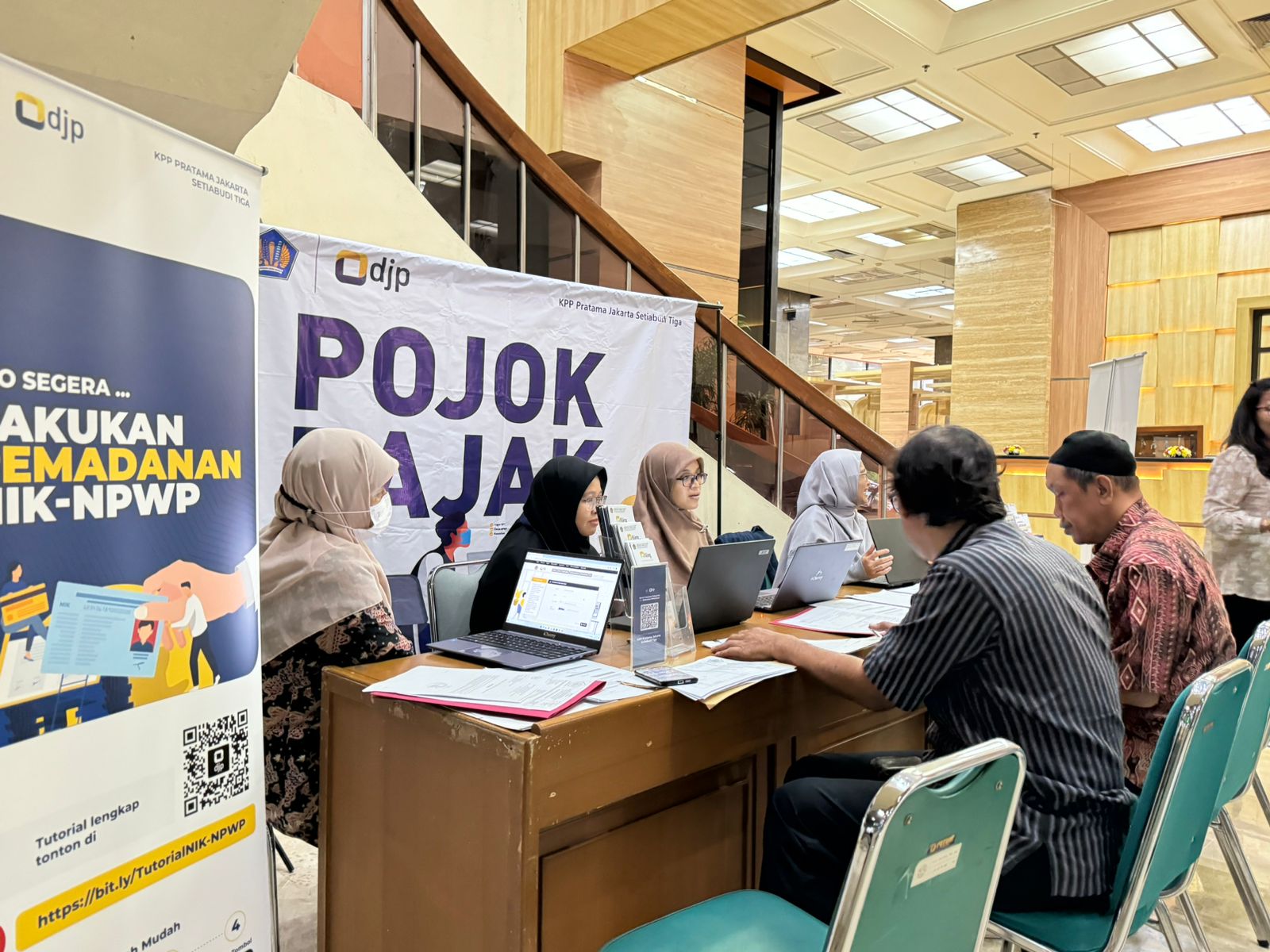 Kantor Pelayanan Pajak (KPP) Pratama Jakarta Setiabudi Tiga bersama dengan Kantor Wilayah (Kanwil) DJP Jakarta Selatan I membuka layanan pojok pajak di Lobby Gedung Kementerian Perindustrian (Kemenperin), Setiabudi, Kota Administrasi Jakarta Selatan (Kamis, 27/2).