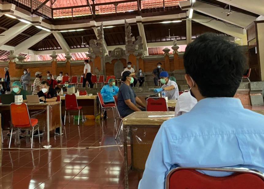 Bekerja sama dengan Dinas Kesehatan Provinsi Bali, pemberian vaksinasi Covid-19 tahap pertama ini dilaksanakan secara bergantian kepada seluruh ASN di Provinsi Bali. Setelah pegawai melakukan registrasi dan pengecekan kesehatan terlebih dahulu, suntikan vaksin hanya akan diberikan kepada pegawai yang lolos pengecekan kesehatan.