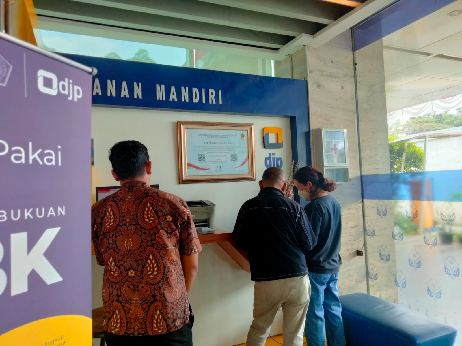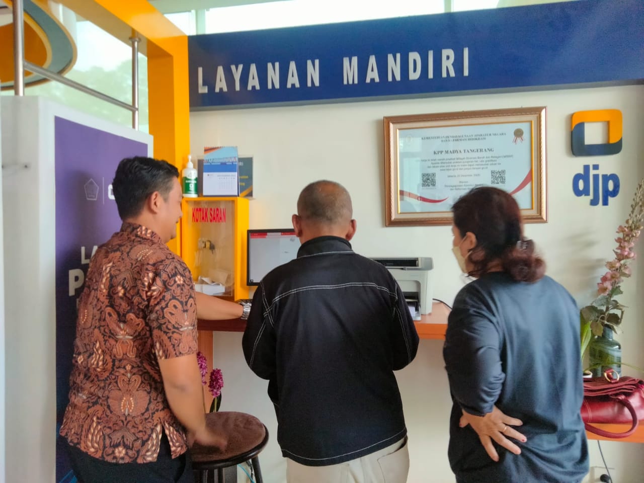 Wajib pajak yang mendatangi TPT tetap harus memperhatikan protokol kesehatan dengan mengambil nomor antrean di layanan mandiri dan konsultasi kepada petugas.