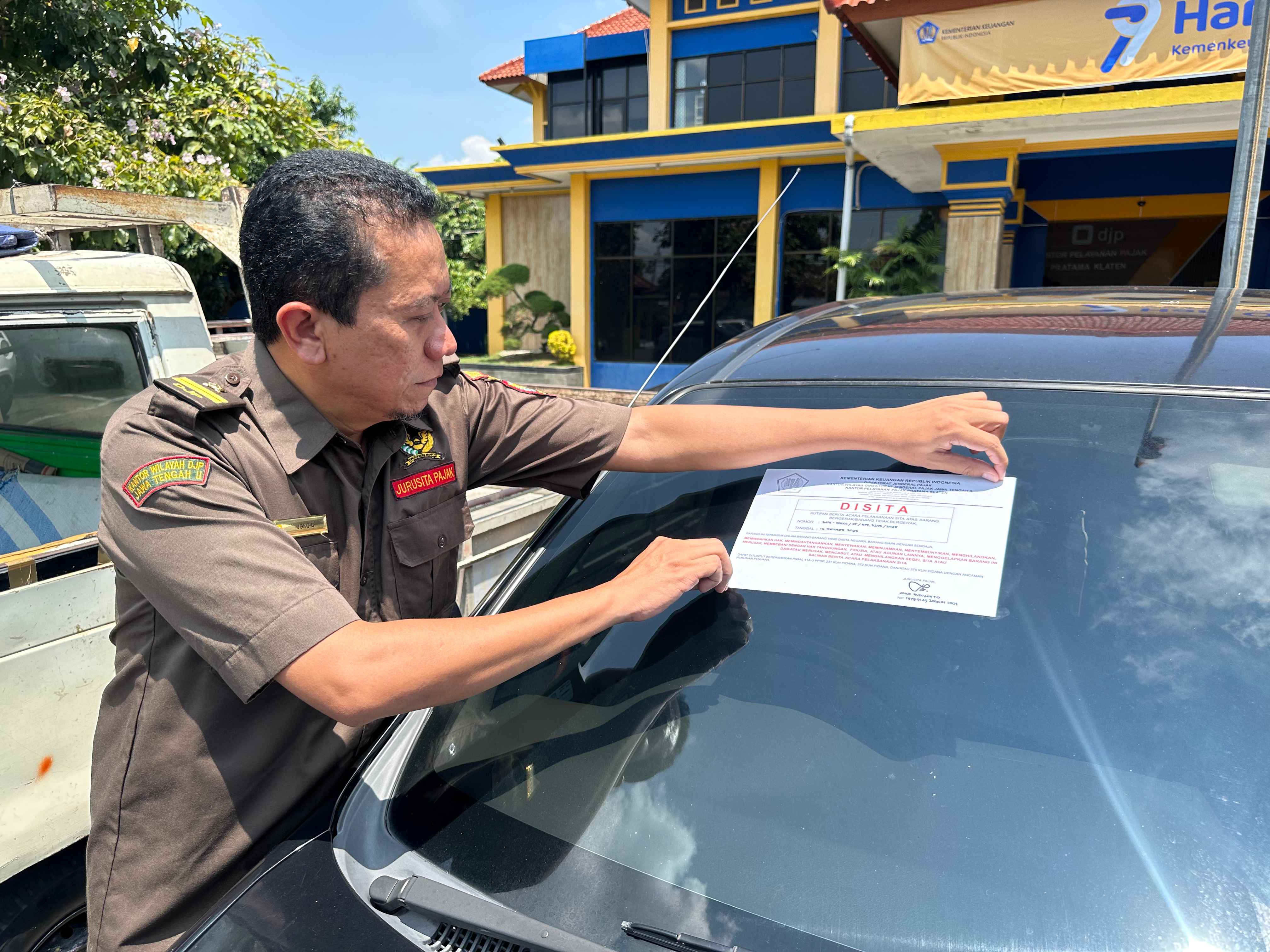 Objek sita dari KPP Pratama Klaten berupa tiga sepeda motor, satu mobil, dan dua truk bak terbuka. Seluruh kendaraan tersebut ditempatkan di halaman KPP Pratama Klaten dan diberi segel resmi oleh juru sita pajak negara (JSPN). Sejumlah warga terlihat menyaksikan langsung proses penataan barang sitaan yang dilakukan oleh petugas.