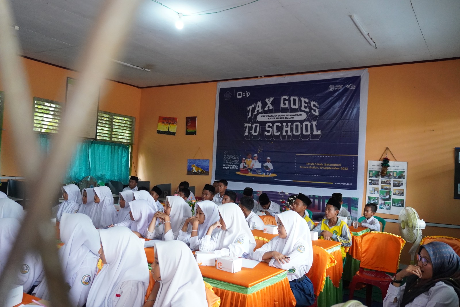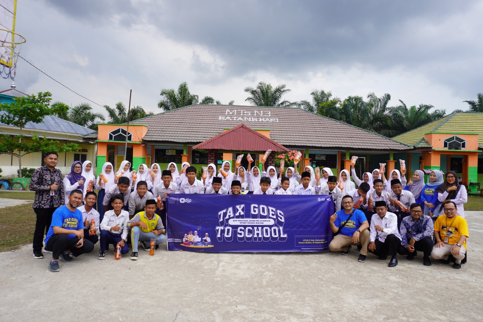 Kantor Pelayanan Pajak (KPP) Pratama Jambi Pelayangan bersama dengan Kantor Pelayanan, Penyuluhan, dan Konsultasi Perpajakan (KP2KP) Muara Bulian mengadakan kegiatan Tax Goes to School (TGTS) bertempat di MTSn 3 Batanghari, Kecamatan Muara Bulian, Kabupaten Batang Hari (Selasa, 19/9).