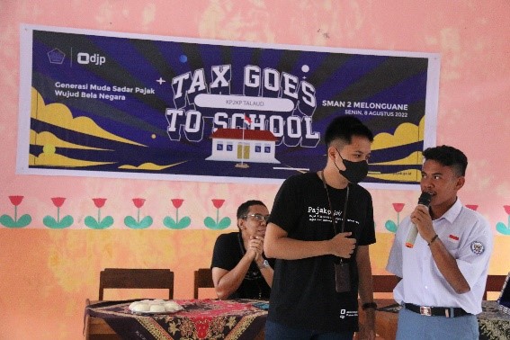 Kantor Pelayanan, Penyuluhan, dan Konsultasi Perpajakan (KP2KP) Talaud mengadakan kegiatan Tax Goes to School (TGTS) di SMA Negeri 2 Melonguane (Senin, 8/8). Kegiatan yang rutin diadakan setiap tahun ini bertujuan untuk menumbuhkan pemahaman tentang pentingnya pajak kepada peserta didik di sekolah yang merupakan calon wajib pajak di masa mendatang.