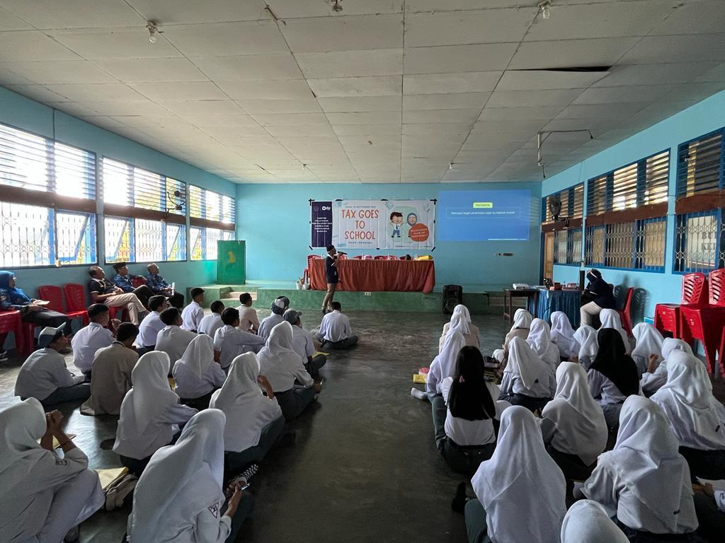Kantor Pelayanan, Penyuluha, dan Konsultasi Perpajakan (KP2KP) Banawa melaksanakan kegiatan Tax Goes To School (TGTS) 2023 di SMK Negeri 1 Banawa (Senin, 18/9). Kegiatan TGTS kedua di tahun 2023 ini diikuti oleh 46 siswa/i SMK Negeri 1 Banawa dengan mengambil tagline “Pemuda Sadar Pajak, Ciri Generasi Bijak”.