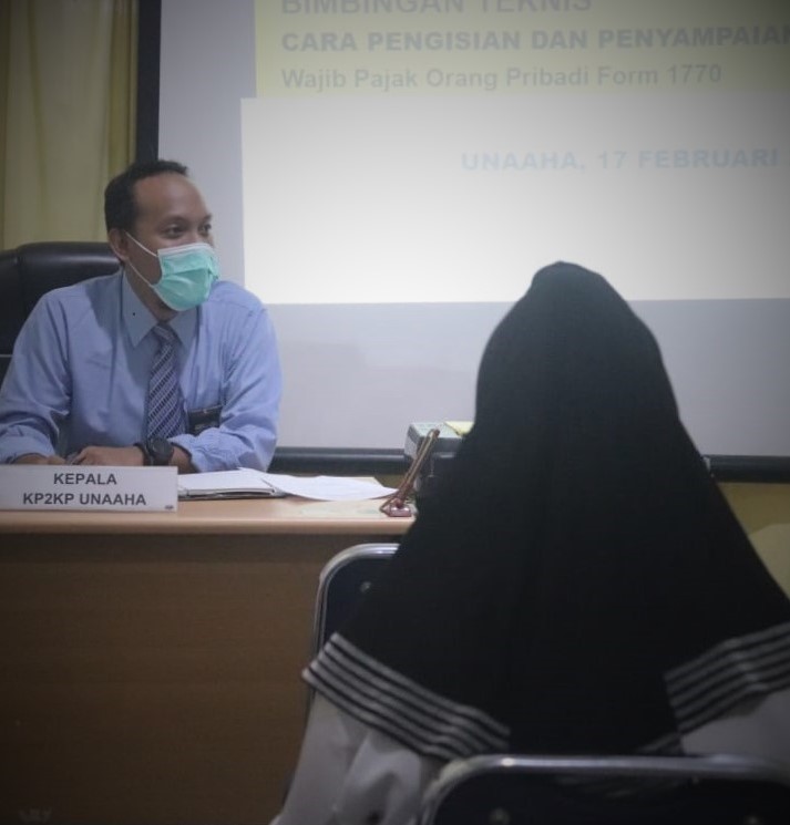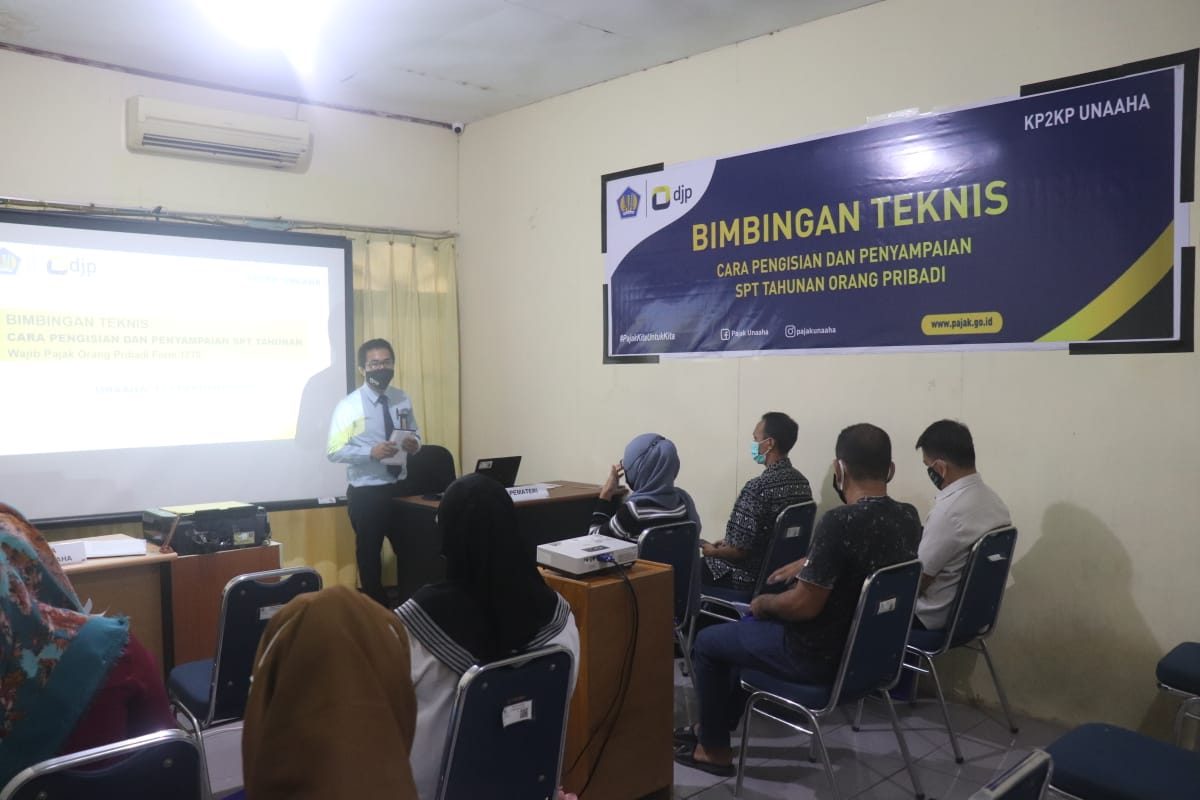 Kantor Pelayanan, Penyuluhan, dan Konsultasi Perpajakan (KP2KP) Unaaha mengadakan kegiatan Bimbingan Teknis Cara Pengisian dan Penyampaian SPT Tahunan Orang Pribadi (Rabu, 17/2).