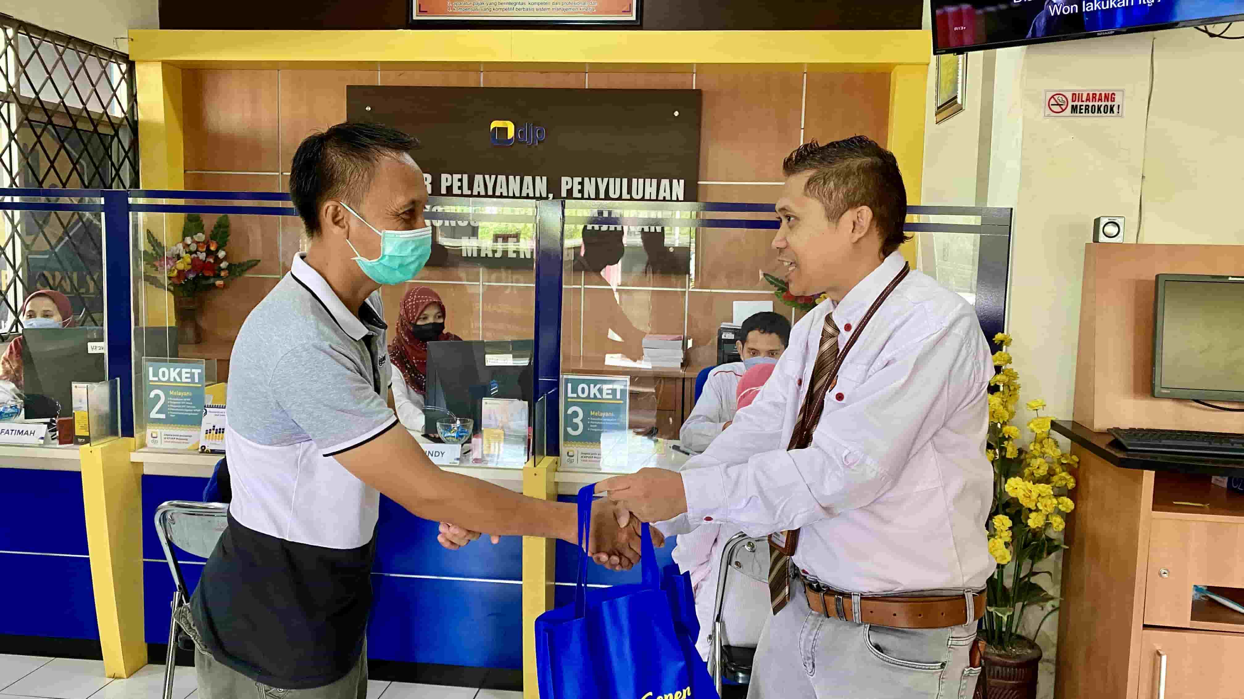 Kantor Pelayanan, Penyuluhan, dan Konsultasi (KP2KP) Majenang memberikan apresiasi khusus kepada tiga wajib pajak di Tempat Pelayanan Terpadu (TPT) KP2KP Majenang (Senin, 2/1).