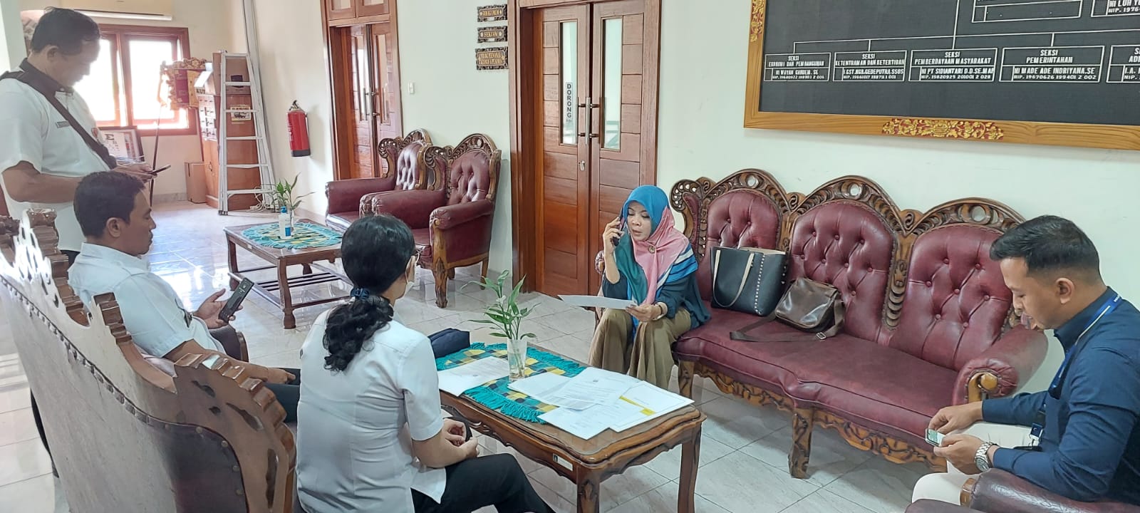Kepala Seksi Pengawasan IV bersama Account Representative Kantor Pelayanan Pajak (KPP) Pratama Badung Utara mengunjungi Kantor Kecamatan Kuta Utara di Perumahan Dalung Permai, Dalung (Rabu, 7/6).