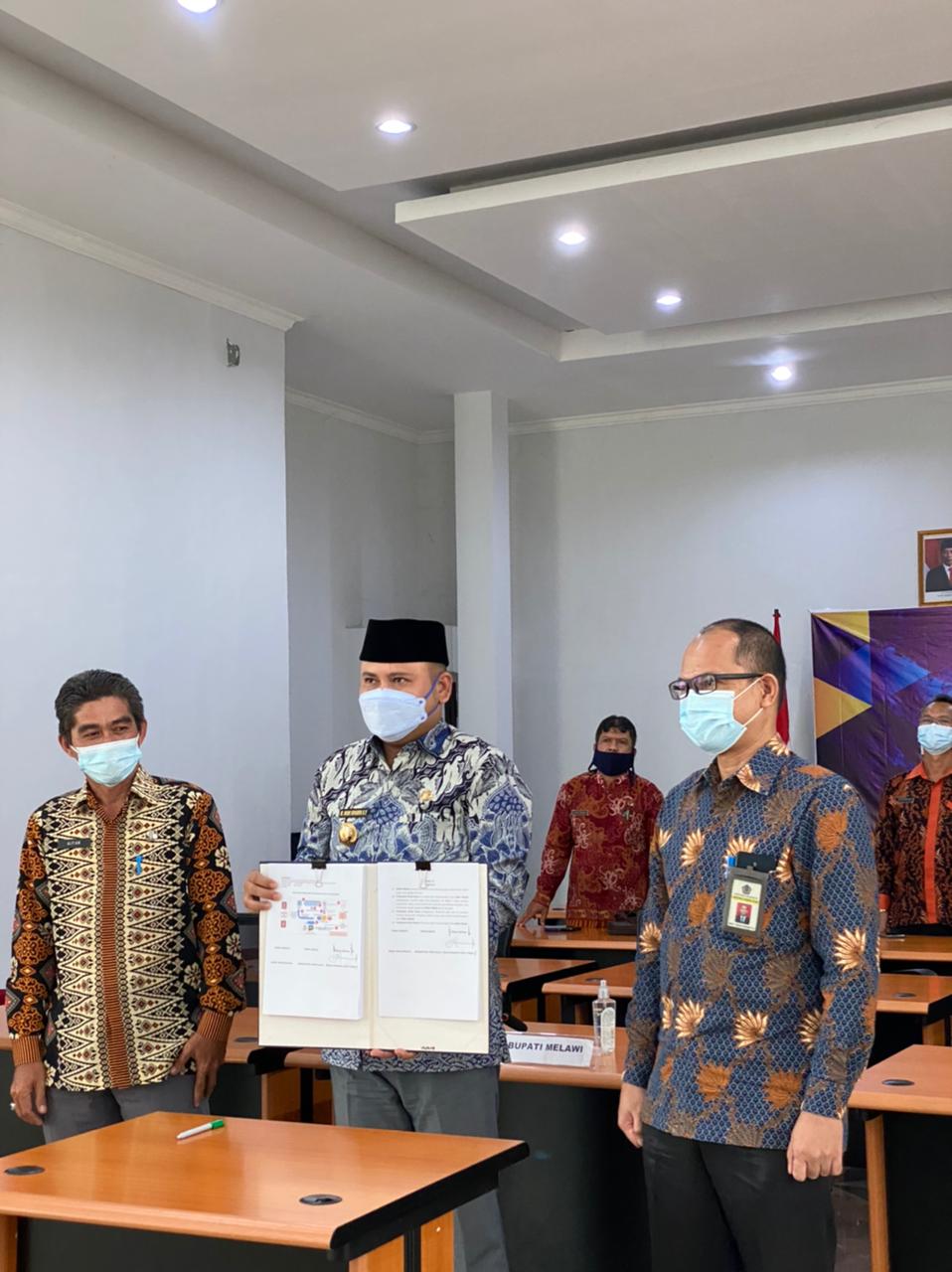 Bupati Melawi menandatangani Perjanjian Kerja Sama antara Direktorat Jenderal Pajak (DJP), Direktorat Jenderal Perimbangan Keuangan (DJPK) dan Pemerintah Daerah Kabupaten Melawi di Aula Kantor Bupati Melawi, Nanga Pinoh (Rabu, 21/4).