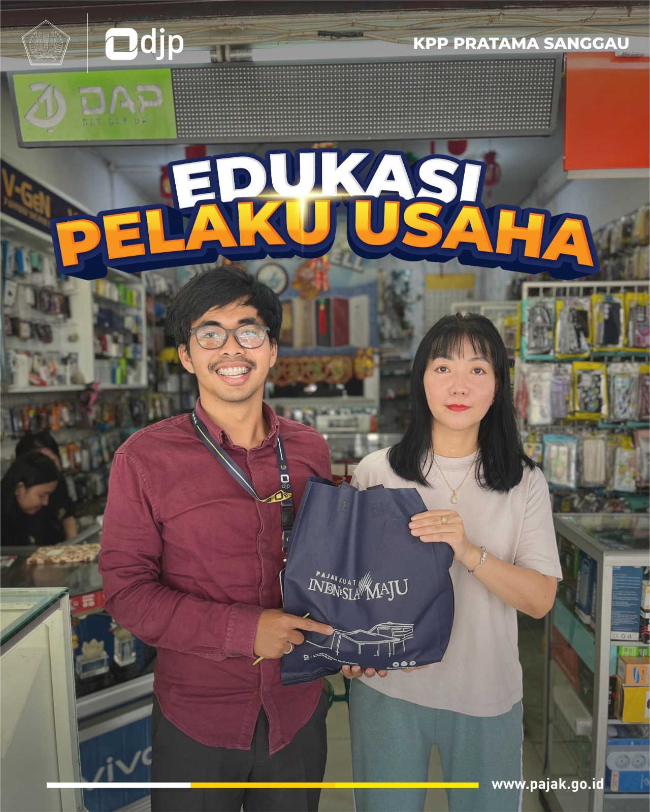 Dalam rangka meningkatkan kesadaran dan pemahaman perpajakan di kalangan pelaku Usaha Mikro, Kecil, dan Menengah (UMKM), Kantor Pelayanan Pajak (KPP) Pratama Sanggau melaksanakan kegiatan edukasi kepada salah satu wajib pajak bernama Eva Roossanty, pemilik Sinar Ponti Cell yang bergerak di bidang perdagangan handphone, aksesori, serta perangkat pendukung lainnya di wilayah Balai Karangan, Kabupaten Sanggau (Selasa, 17/6). Hadir Penyuluh Pajak, Arraya Syanazh Yudistira, memberikan pemahaman kepada Eva seputar perpajakan.