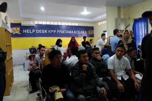 Tak seperti hari-hari biasanya, Pos Pelayanan Kantor Pelayanan Pajak (KPP) Pratama Kolaka dipenuhi oleh pendaftar Nomor Pokok Wajib Pajak (NPWP) (Rabu, 19/6). Pegawai Honorer di Pemerintah Daerah Kabupaten Kolaka dan Kolaka Timur datang langsung ke Pospel KPP Pratama Kolaka. Mereka rela mengantre untuk mendapat NPWP guna melengkapi persyaratan untuk pengangkatan tenaga kontrak Pegawai Pemerintah dengan Perjanjian Kerja (P3K).