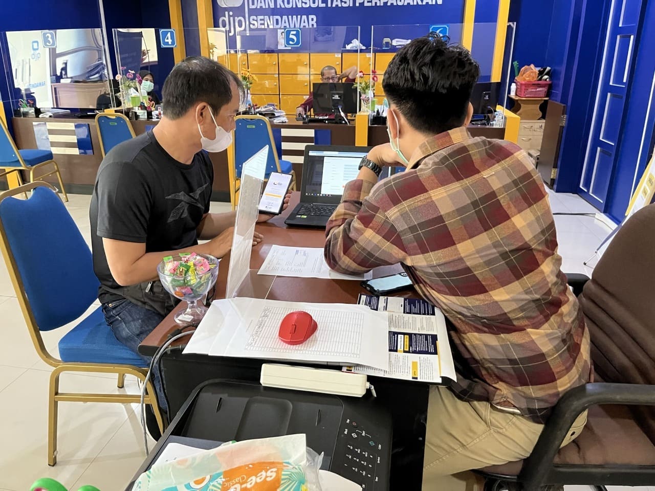 Yoga, petugas KP2KP Sendawar memberikan layanan konsultasi kepada Paul Stelson secara langsung. Yoga menjelaskan apa saja yang harus dilaporkan dalam Surat Pemberitahuan Pengungkapan Harta (SPPH).