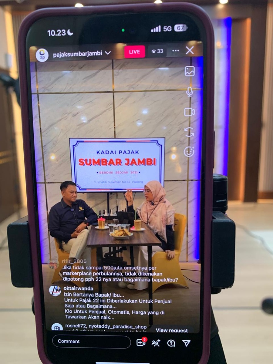 Acara yang digelar secara Instagram Live @pajaksumbarjambi (Rabu, 23/7) ini menghadirkan dua penyuluh pajak, Ismi Megasari dan Dendi Amrin. Dalam waktu kurang dari 24 jam, siaran ini telah ditonton hampir 800 kali, menandakan tingginya antusiasme pelaku usaha daring terhadap isu perpajakan e-commerce.