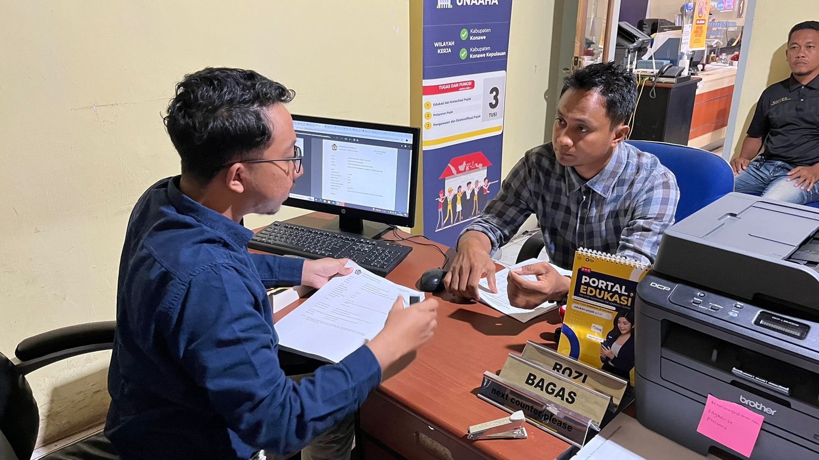 Kantor Pelayanan, Penyuluhan, dan Konsultasi Perpajakan (KP2KP) Unaaha memberikan pelayanan kepada Wajib Pajak Instansi Pemerintah Desa di Ruang TPT KP2KP Unaaha yang berlokasi di Jalan Diponegoro, Kelurahan Tuoy, Kecamatan Unaaha, Kabupaten Konawe (Kamis, 28/11). Kunjungan instansi pemerintah desa ini diterima oleh Petugas KP2KP Unaaha Satriawan yang sedang melaksanakan piket helpdesk.