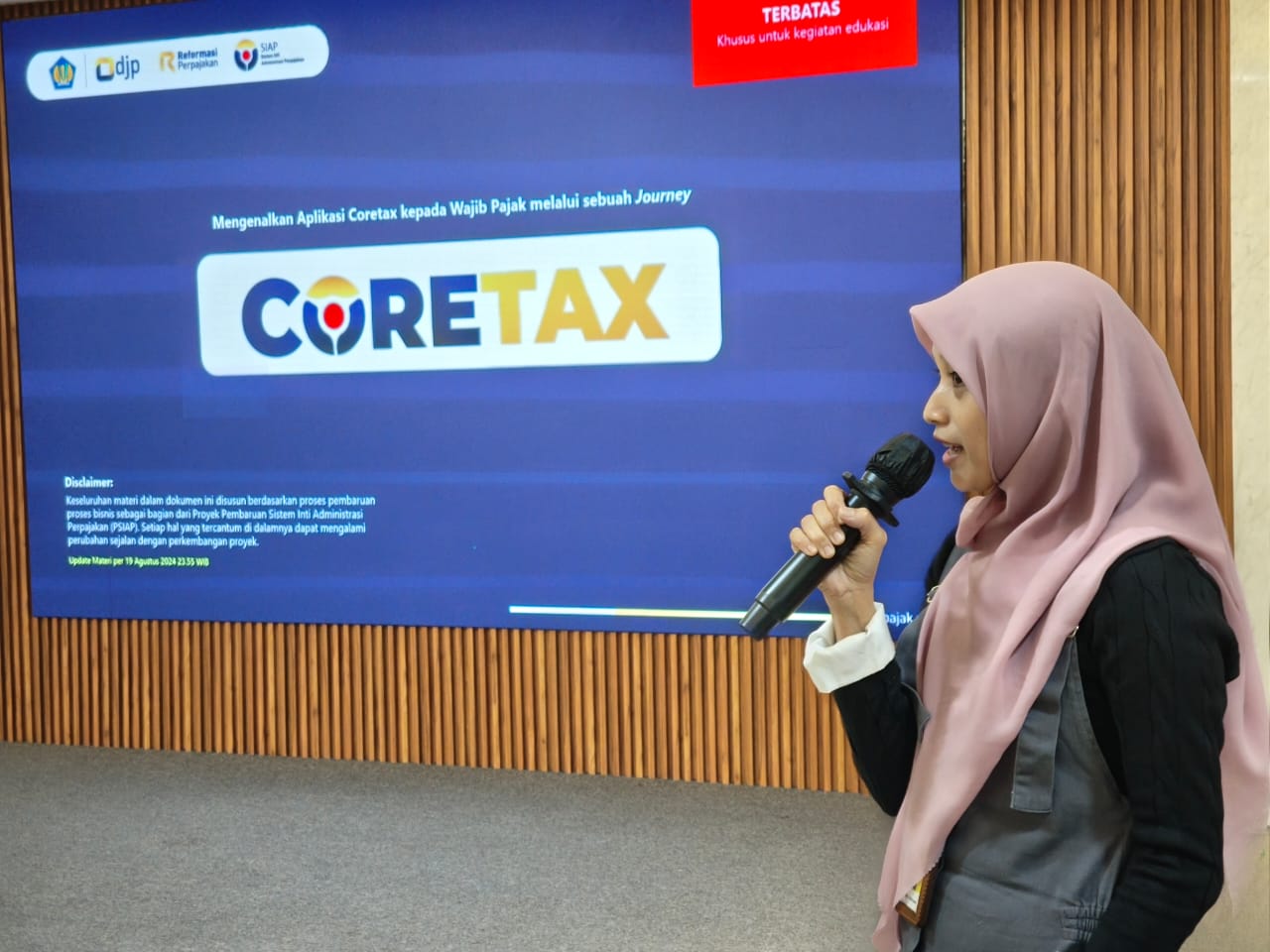 “Antusiasme dari wajib pajak terhadap Coretax ini cukup tinggi. Kami sedikit terkejut karena pendaftaran sosialisasi hari ini langsung full,” ujar Asisten Penyuluh Pajak Muhammad Dimas Ramadhan selaku pemateri.