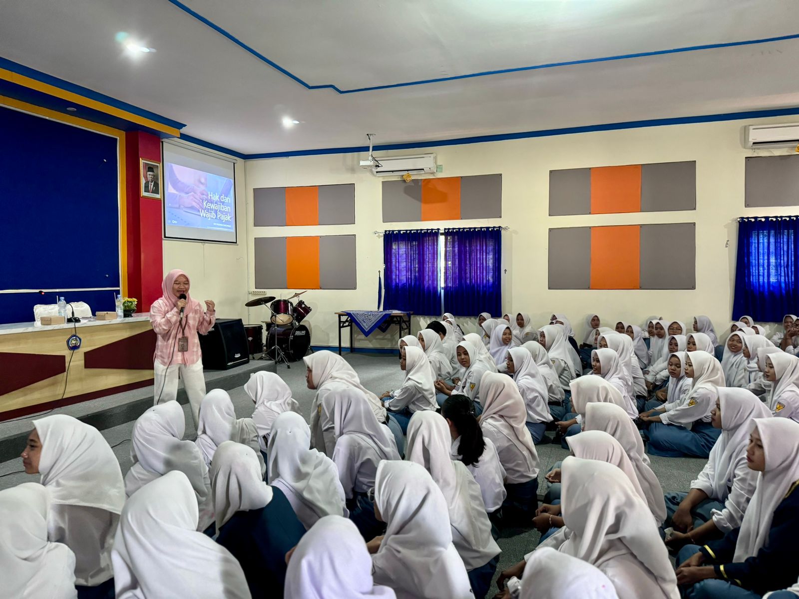Dalam paparannya, Bella menjelaskan mengenai pengertian pajak, Nomor Pokok Wajib Pajak (NPWP), serta hak dan kewajiban bagi wajib pajak yang sudah memiliki NPWP.