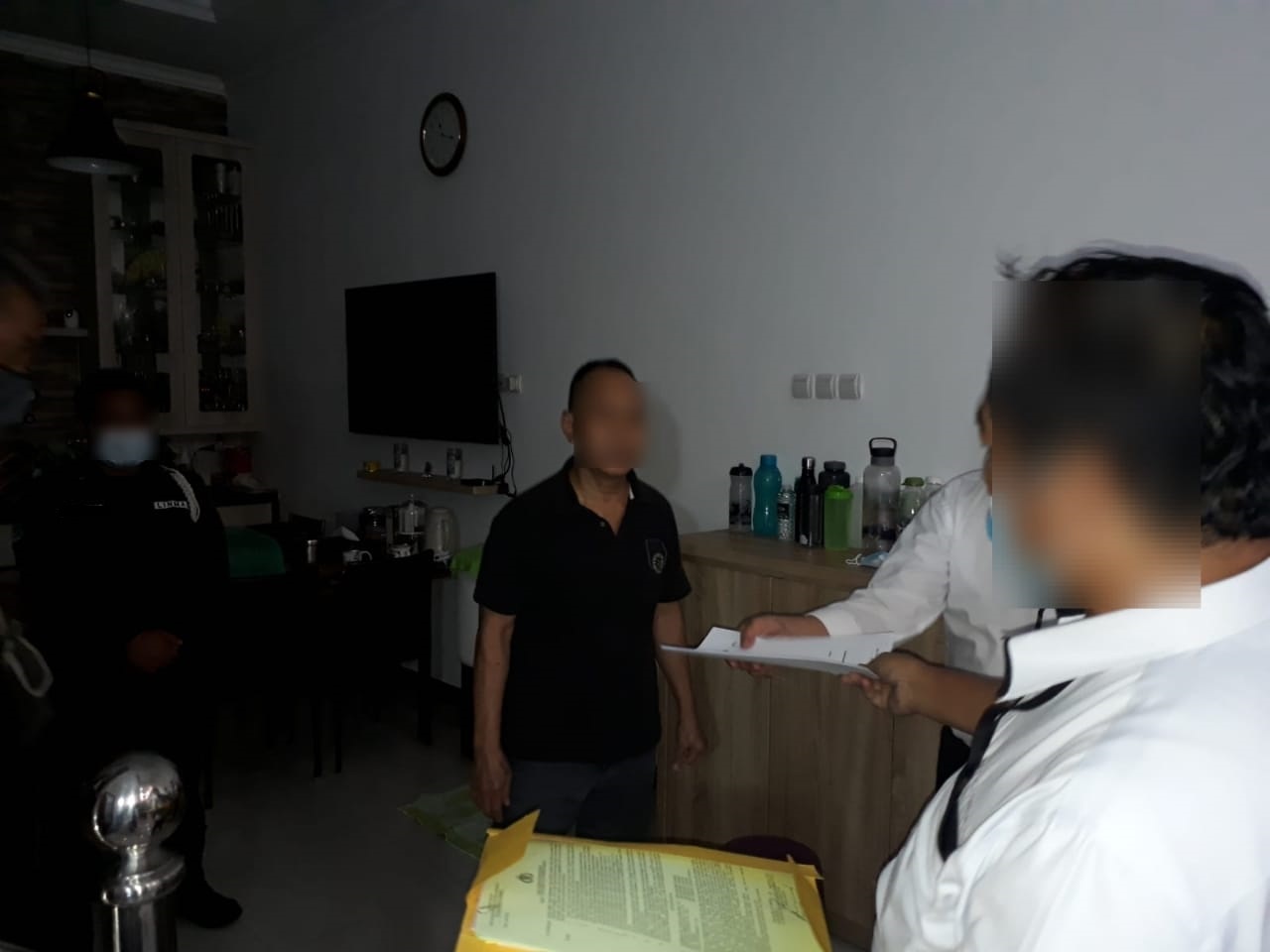 Berkat bantuan tim intelijen DJP, keberadaan tersangka akhirnya diketahui yaitu di rumah yang telah disita oleh penyidik DJP. Usai memperoleh informasi tersebut, pada siang hari, tim penyidik DJP mendatangi lokasi tersebut dan hanya berhasil menemui anak tersangka yang menyampaikan bahwa tersangka tidak berada di rumah dan meminta penyidik untuk menunggu.