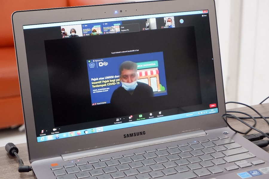 Kantor Pelayanan Pajak (KPP) Pratama Cilacap mengadakan Kegiatan Dialog dan Edukasi Hak dan Kewajiban Perpajakan UMKM serta Insentif Pajak bagi wajib pajak terdampak Covid-19 secara daring di Cilacap (Kamis , 28/10).