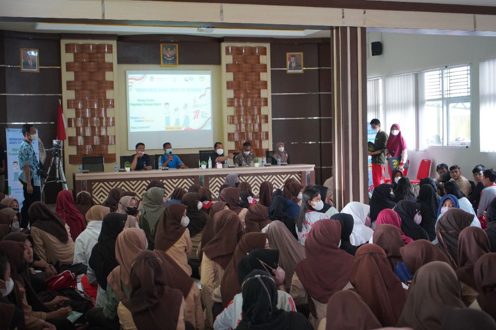 Kantor Pelayanan Pajak (KPP) Pratama Cilacap memberikan edukasi kepada 137 siswa dalam kegiatan Kemenkeu Satu Goes To School di Adipala Kabupaten Cilacap (Jumat, 12/8).