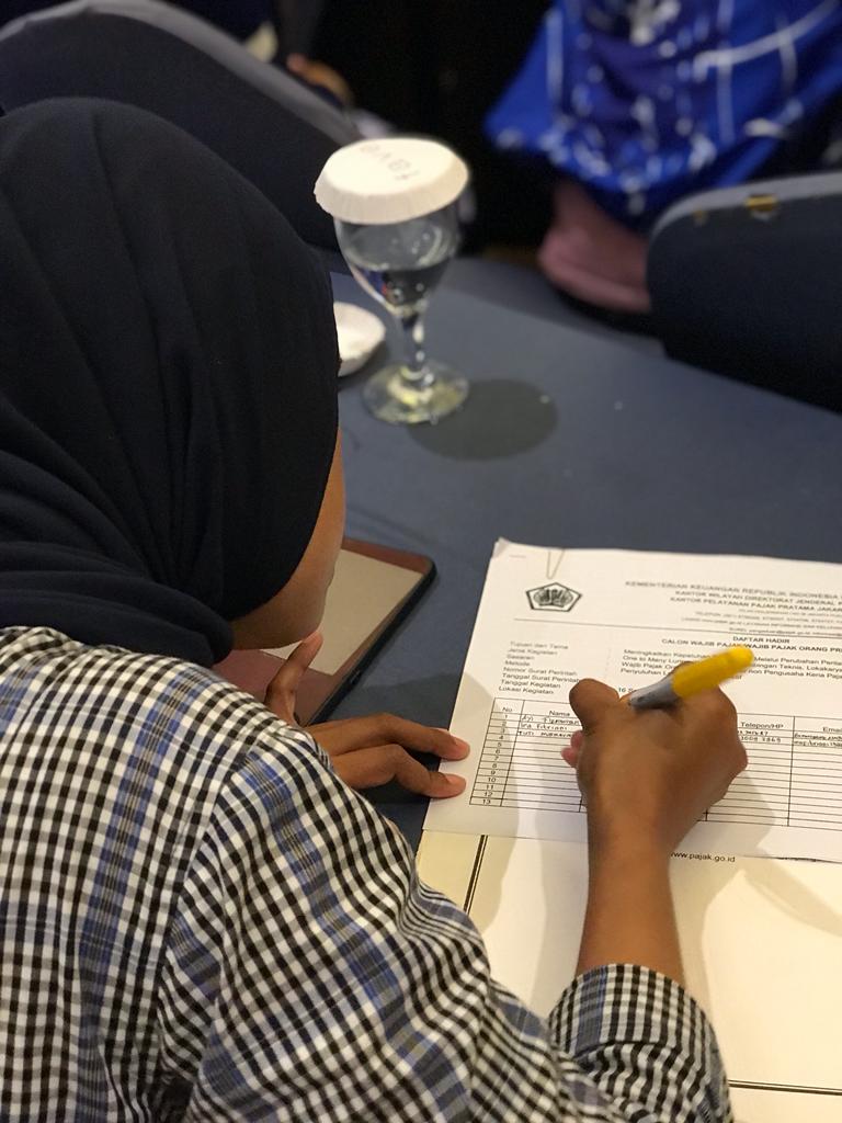 Acara yang diadakan atas kerja sama dengan Dinas Koperasi dan UMKM ini diikuti oleh tiga puluh orang peserta. Sebagian besar peserta yang hadir belum memiliki Nomor Pokok Wajib Pajak (NPWP), sehingga belum memiliki pengetahuan mendalam terkait kewajiban perpajakan khususnya untuk pelaku UMKM.