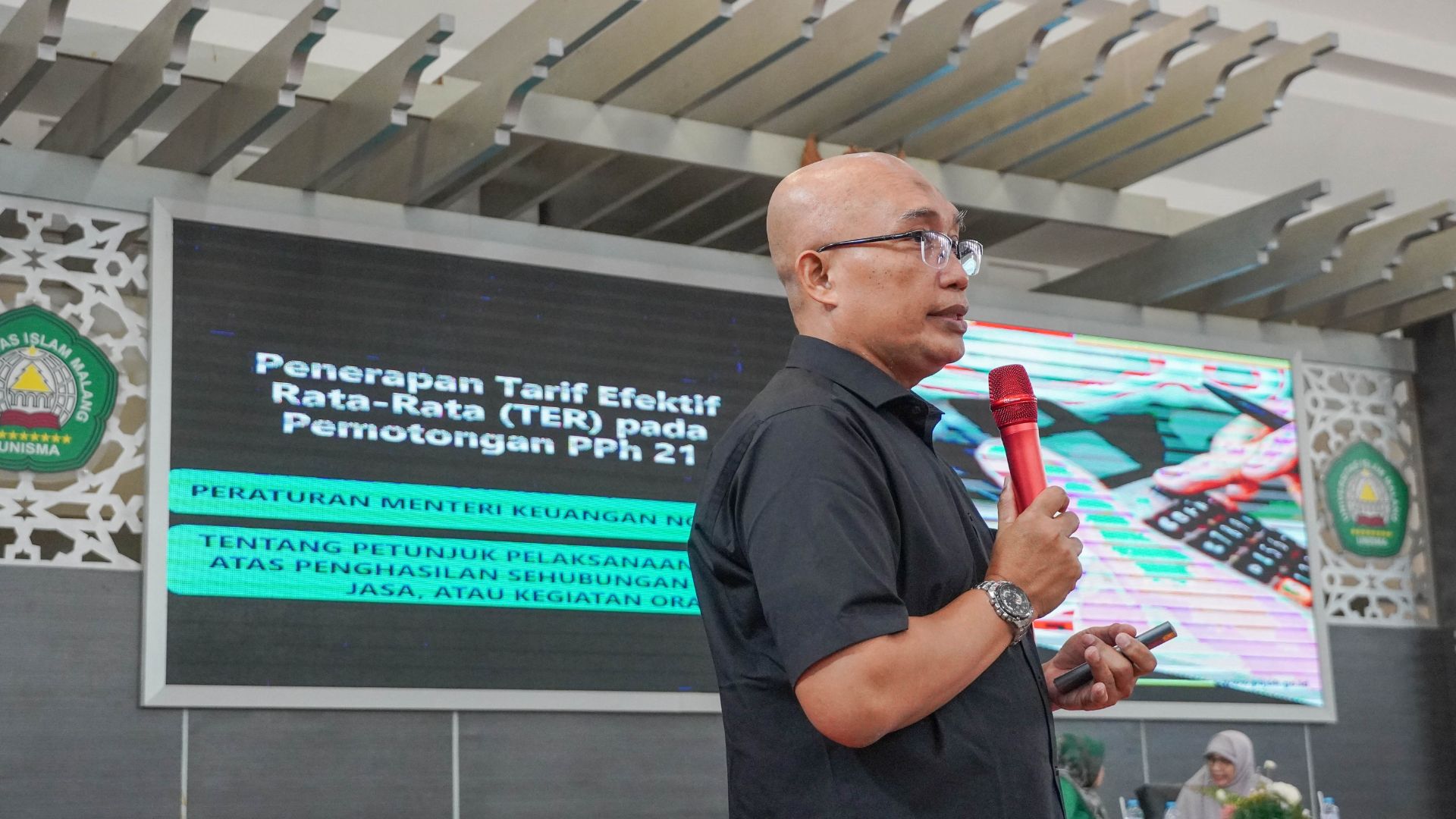 Penyuluh Pajak Kantor Wilayah Direktorat Jenderal Pajak (Kanwil DJP) Jawa Timur III Acob Ahmadi menyosialisasikan kebijakan penerapan Tarif Efektif Rata-rata (TER) Pajak Penghasilan (PPh) Pasal 21 yang telah berlaku mulai 1 Januari 2024. Acob memaparkan tujuan dan latar belakang penerapan TER PPh 21 ini dalam kegiatan Pembukaan Program Relawan Pajak dan Brevet Pajak yang diselenggarakan Fakultas Ekonomi dan Bisnis Universitas Islam Malang (FEB Unisma) di Kota Malang (Selasa, 5/11).