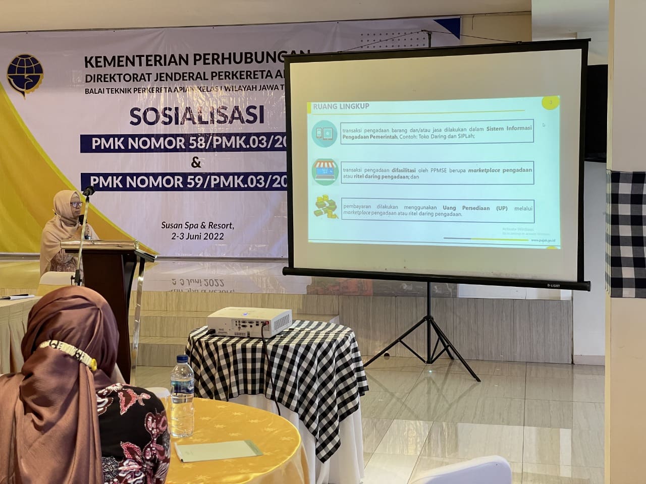 Sosialisasi ini dihadiri oleh sekitar 50 satuan kerja dan rekanan, membahas tentang Peraturan Menteri Keuangan (PMK) Nomor 58/PMK.03/2022 dan PMK Nomor 59/PMK.03/2022.