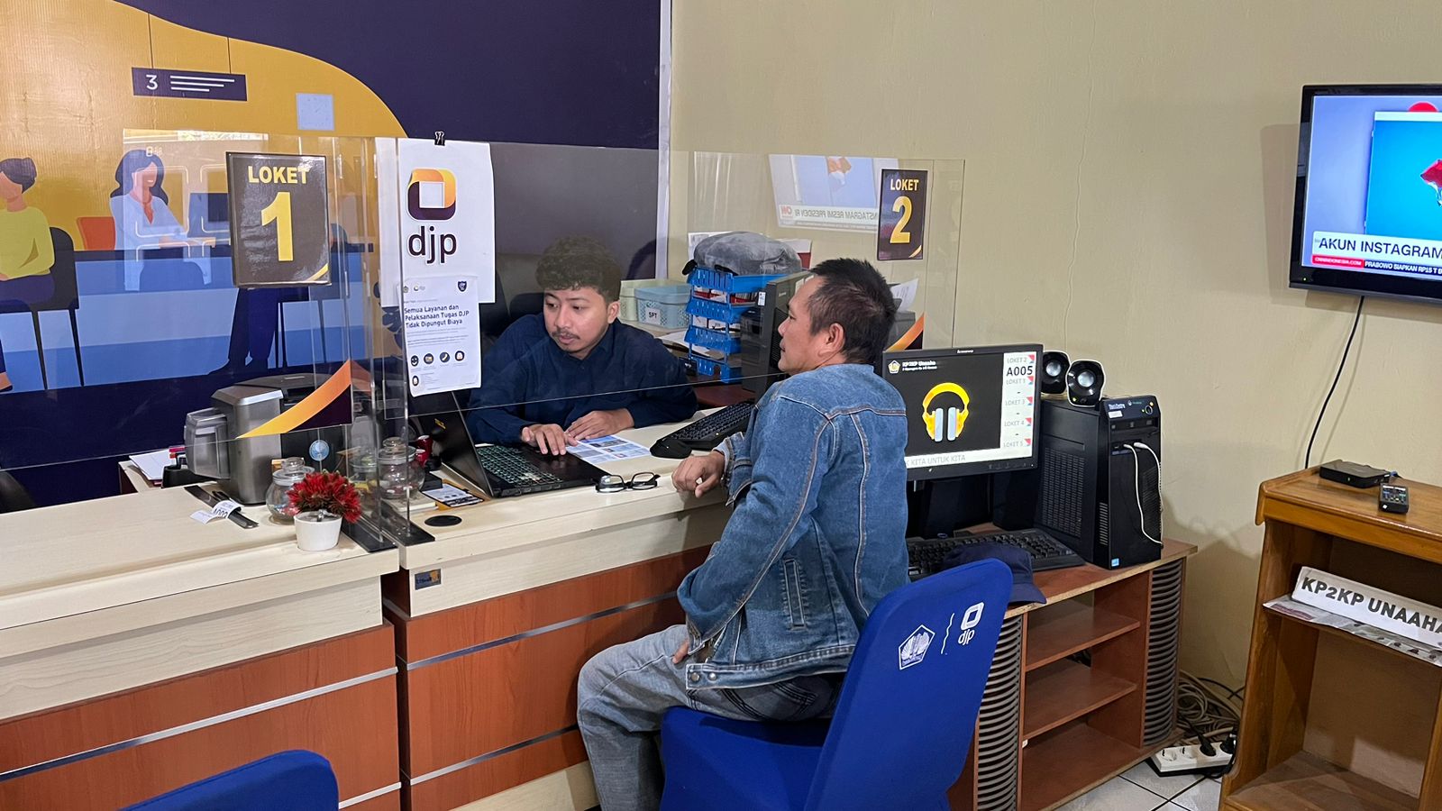 Penyuluh Pajak Kantor Pelayanan, Penyuluhan, dan Konsultasi Perpajakan (KP2KP) Unaaha Satriawan memberikan edukasi perpajakan yang dilakukan secara luring kepada salah satu Wajib Pajak Badan di Tempat Pelayanan Terpadu (TPT) KP2KP Unaaha, Kab. Konawe (Kamis, 31/10). Kegiatan edukasi ini tentang aplikasi e-Bupot Pajak Penghasilan (PPh) Pasal 21 dan perhitungan PPh Pasal 21 atas penghasilan yang diterima oleh pegawai tidak tetap.