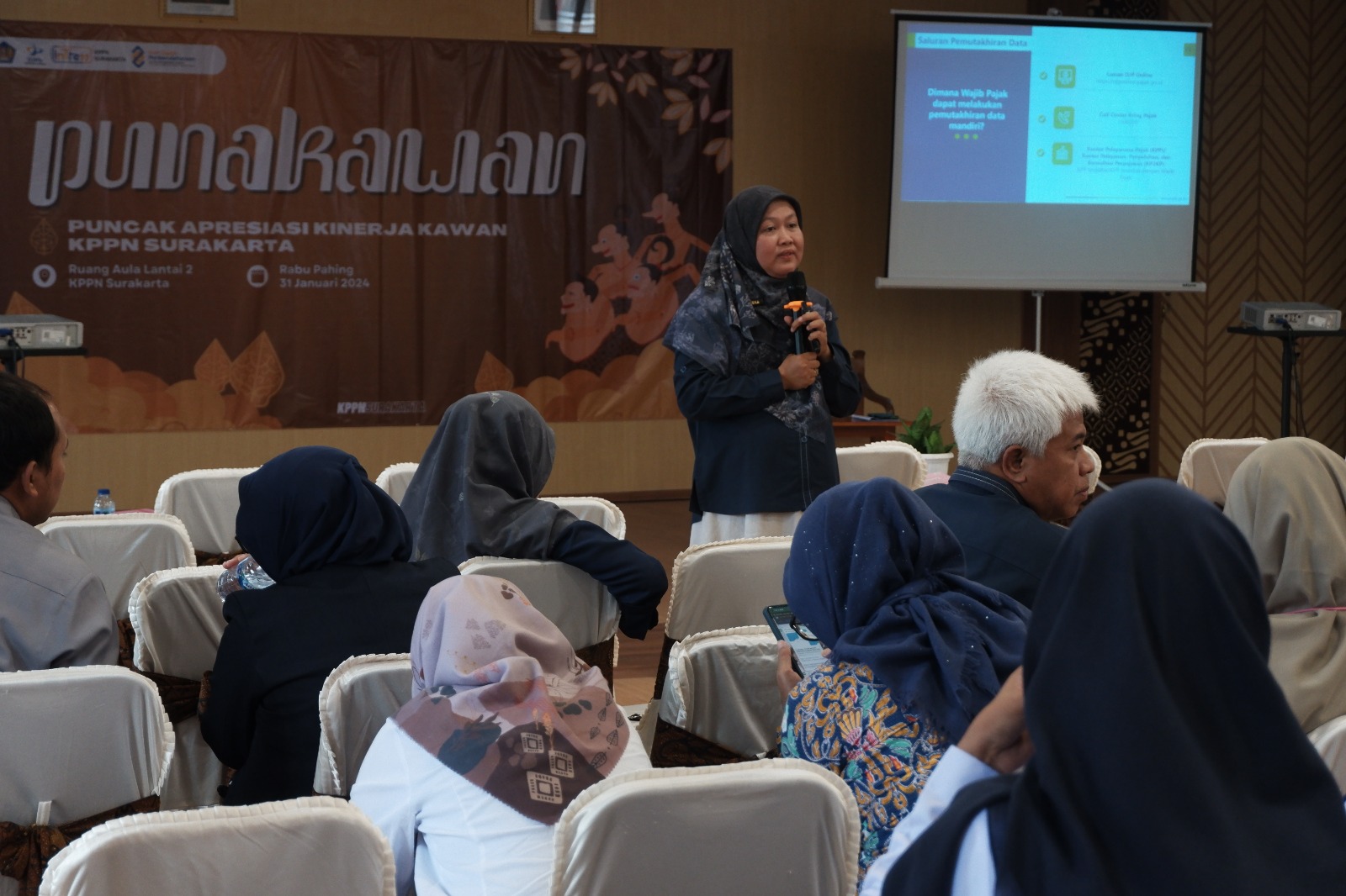 Kantor Pelayanan Perbendaharaan Negara (KPPN) Tipe A1 Surakarta menggelar penyuluhan perpajakan bagi bendahara pengeluaran satuan kerja di wilayahnya di aula lantai 2 KPPN Surakarta pada (Rabu, 31/1). Acara dimulai pukul 10.00 WIB menghadirkan Wieka Wintari selaku penyuluh pajak dari Kantor Wilayah Direktorat Jenderal Pajak (Kanwil DJP) Jawa Tengah II.