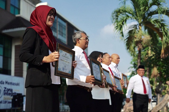Pada apel kali ini, Kakanwil memberikan piagam penghargaan atas diraihnya predikat Zona Integritas Wilayah Bebas Korupsi dari Sri Mulyani Indrawati Menteri Keuangan Republik Indonesia kepada Kanwil DJP Jawa Timur I, KPP Pratama Surabaya Wonocolo, KPP Pratama Surabaya Gubeng, KPP Pratama Surabaya Karang Pilang, dan KPP Pratama Surabaya Pabean cantikan.