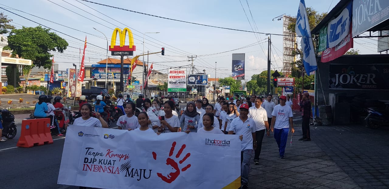 Dalam rangka Peringatan Hari Antikorupsi Sedunia 2019 (Hakordia 2019) yang bertemakan “Tanpa Korupsi, DJP Kuat, Indonesia Maju”, KPP Pratama Singaraja menyemarakkan dengan menggelar beberapa rangkaian acara, salah satunya mengajak para warga untuk mengatakan “say no to corruption” di lingkungan sekitar Kota Singaraja (Jumat, 6/12).