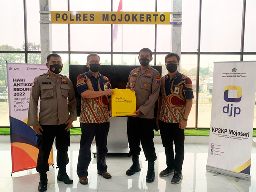 Kantor Pelayanan, Penyuluhan, dan Konsultasi Perpajakan (KP2KP) Mojosari melakukan kunjungan ke Kantor Kepolisian Resor Mojokerto, Mojosari, Kabupaten Mojokerto (Jumat, 10/12). Kegiatan ini dilaksanakan dalam rangka memperingati Hari Anti Korupsi Sedunia (Hakordia) tahun 2022.
