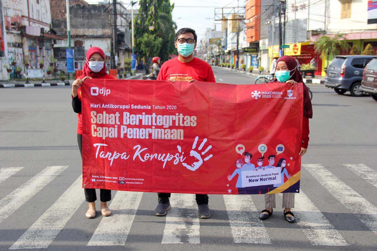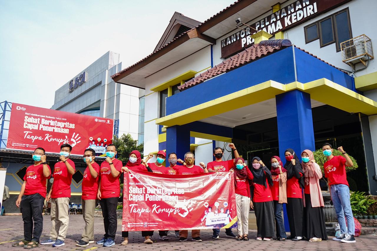 KPP Pratama Kediri menggelar aksi simpatik untuk memperingati Hari Anti Korupsi Sedunia (Hakordia) 2020 di persimpangan Jalan Dhoho, Kediri (Jumat, 12/12 ).